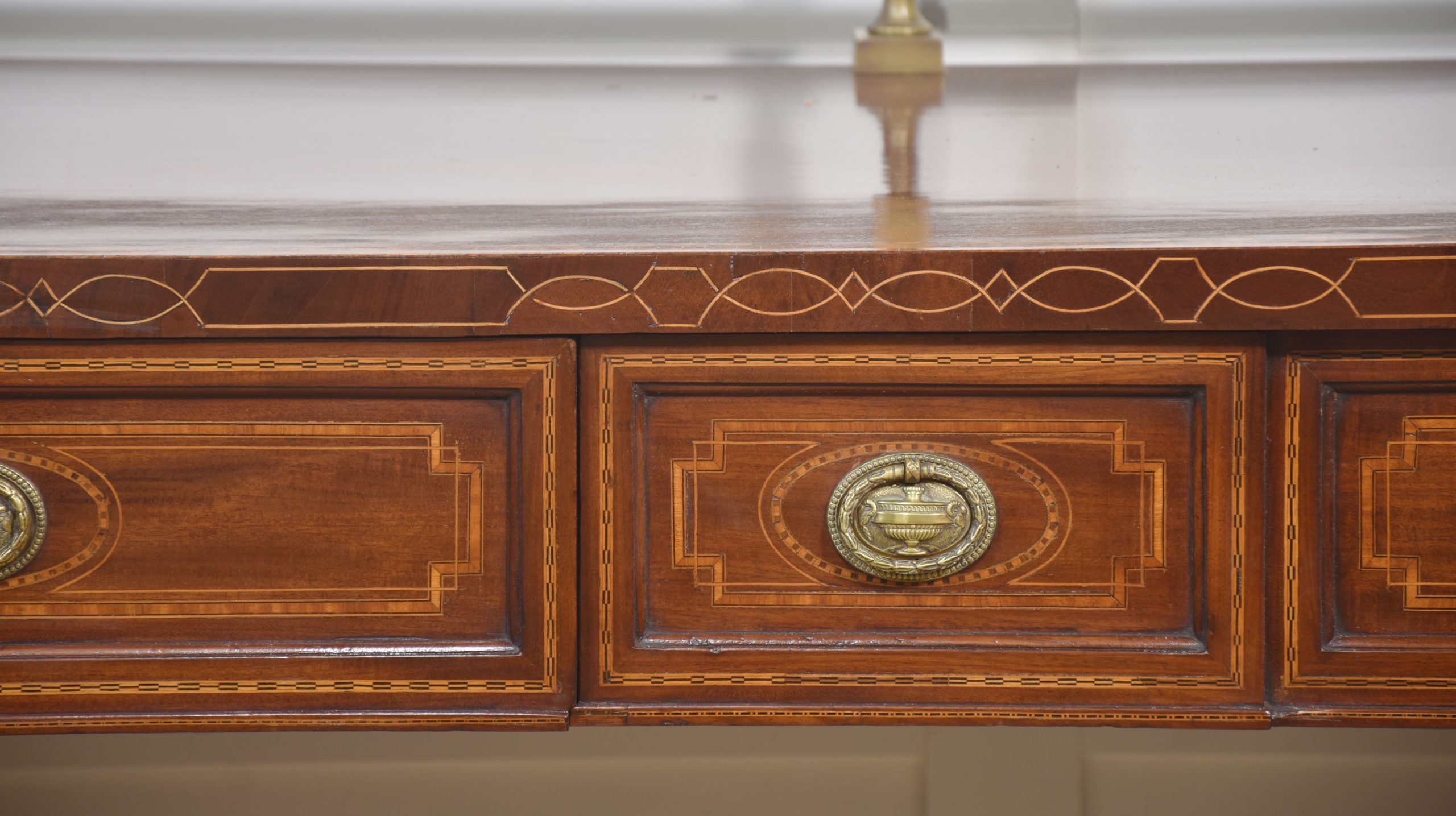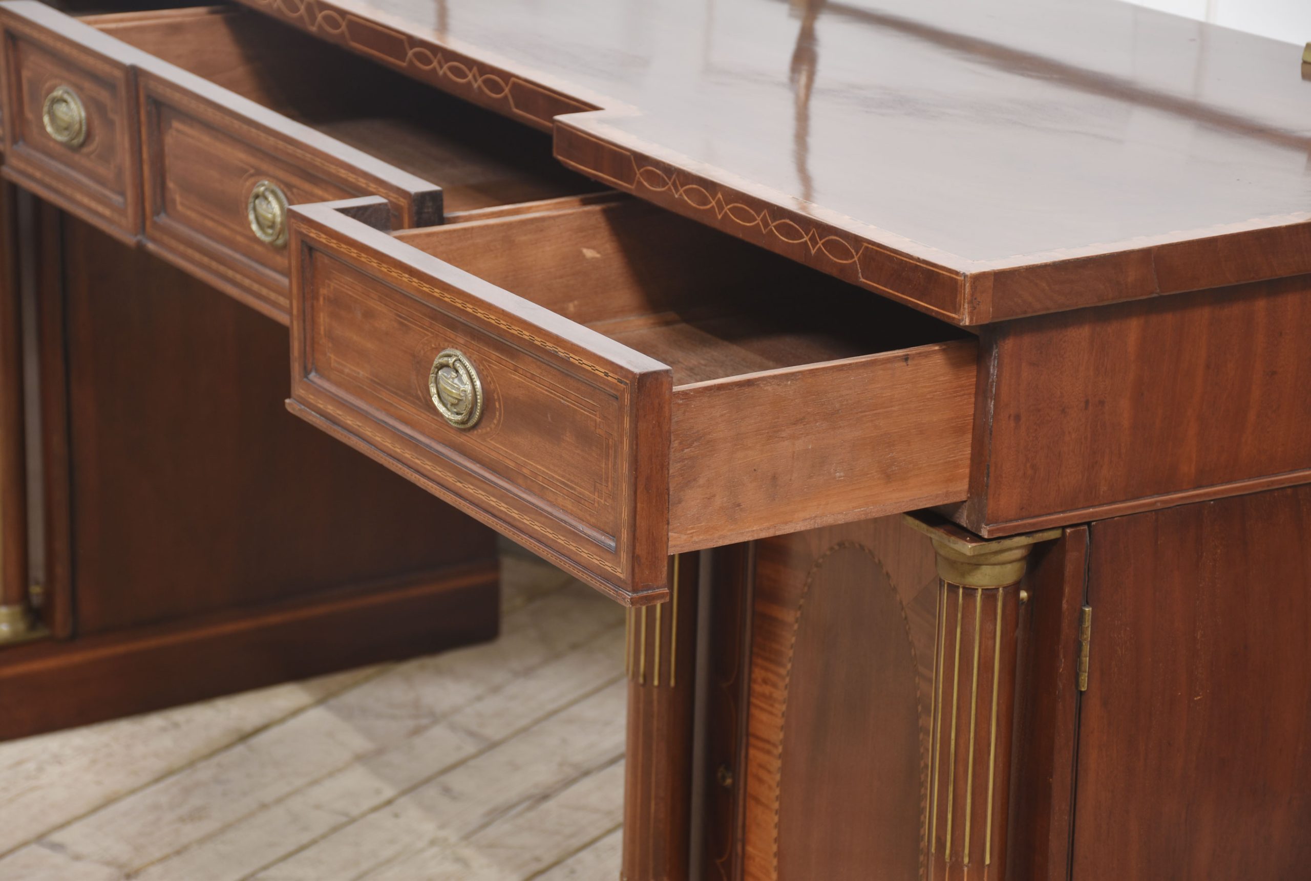19th century mahogany pedestal inlaid sideboard