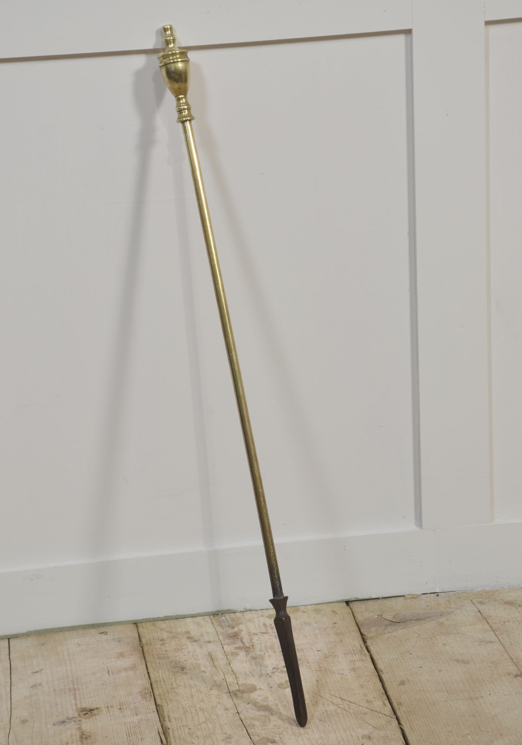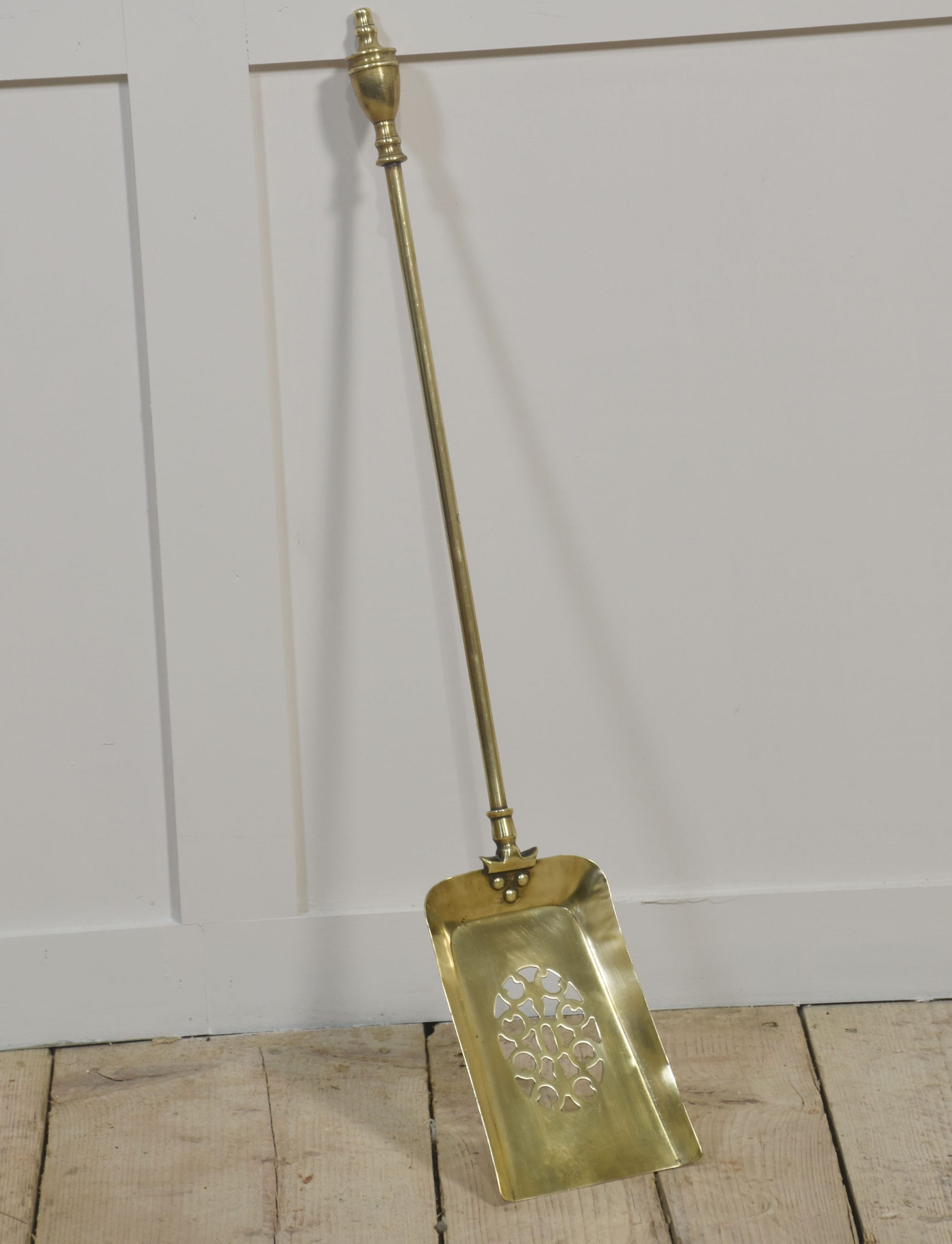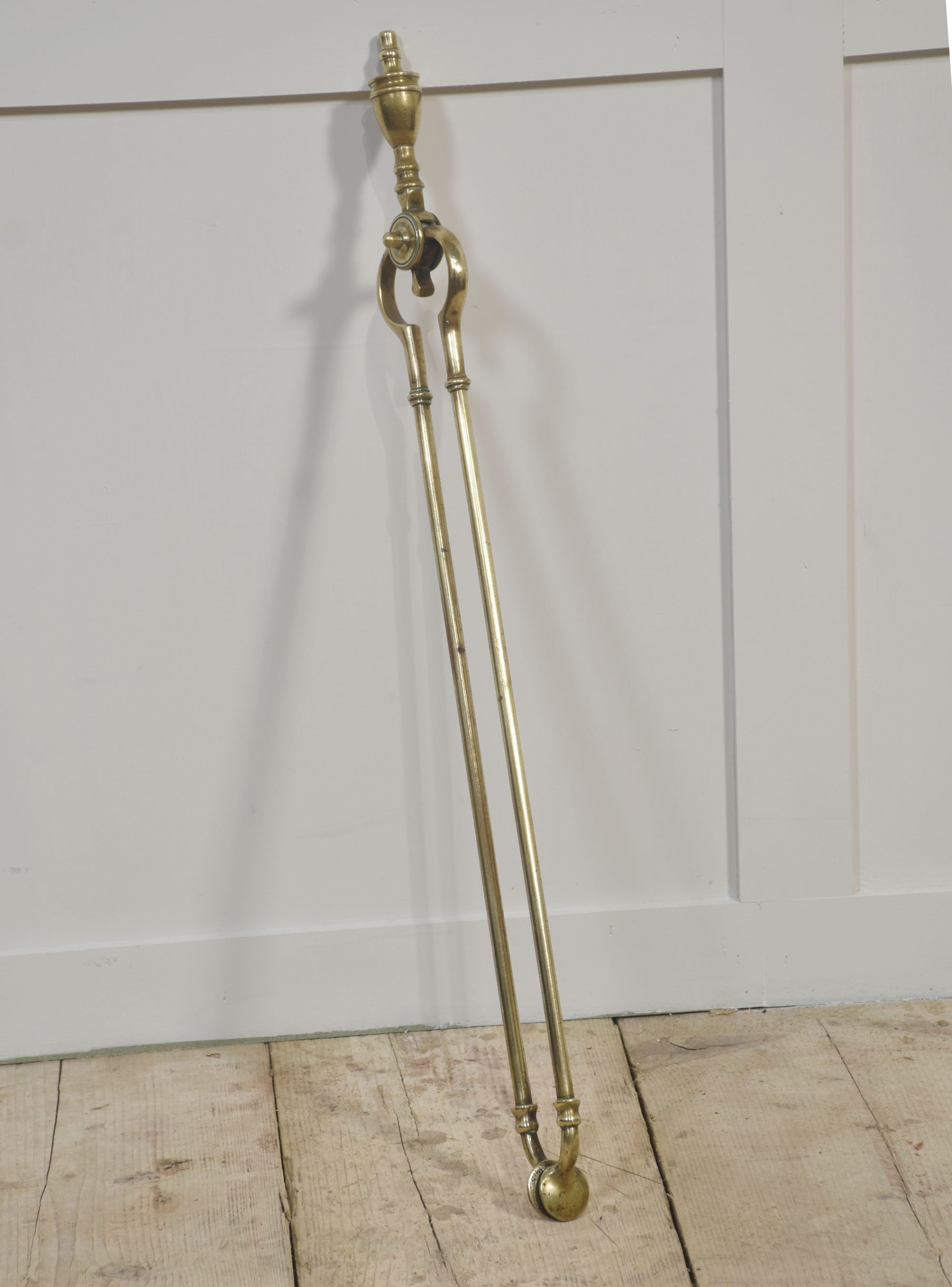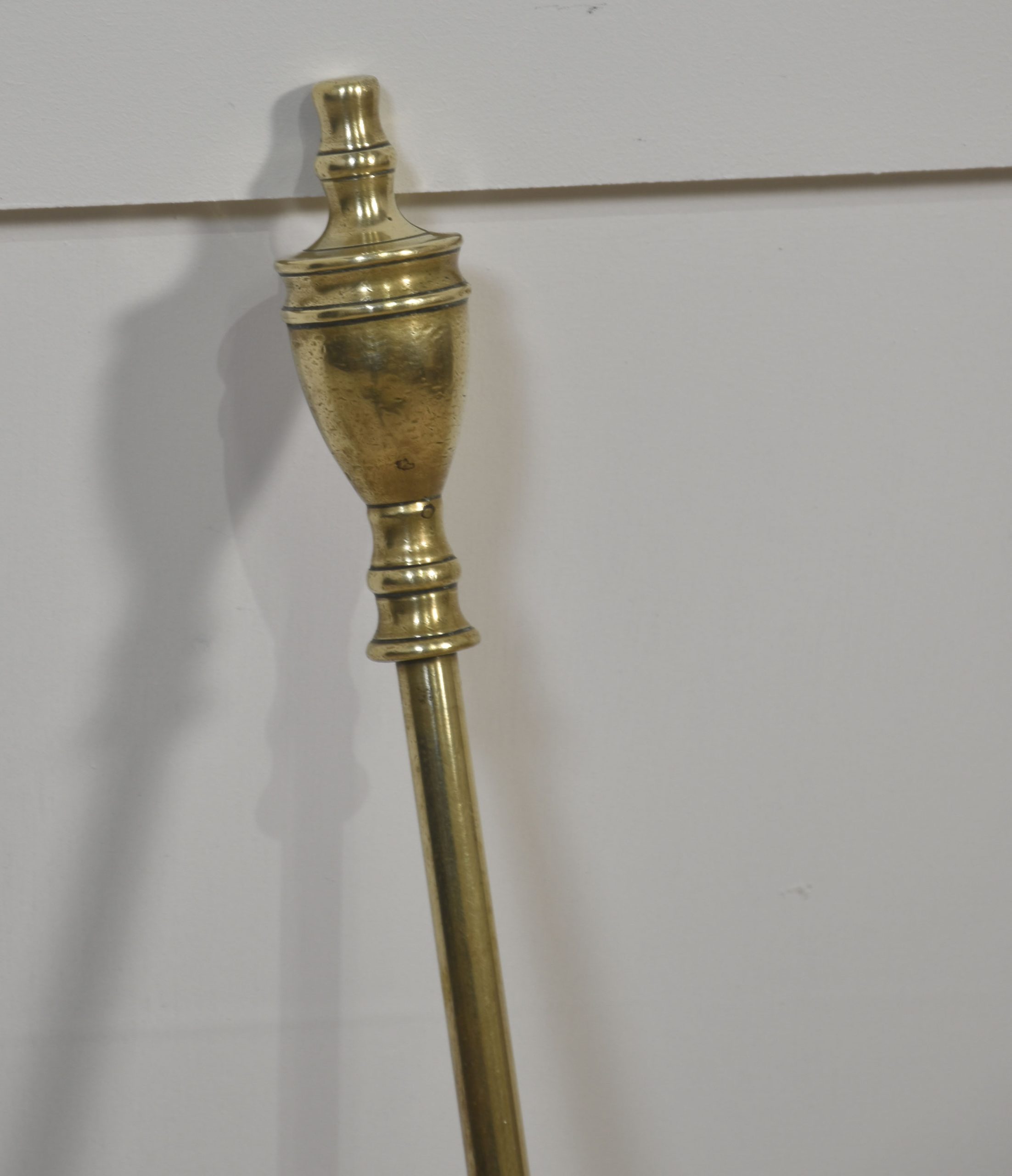 Set of three brass fire tools, consisting of poker, tongs and shovel with well-casted handles.