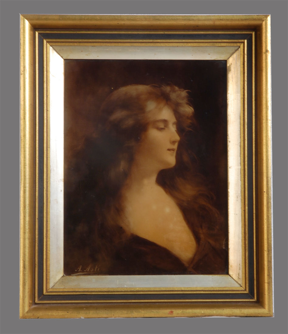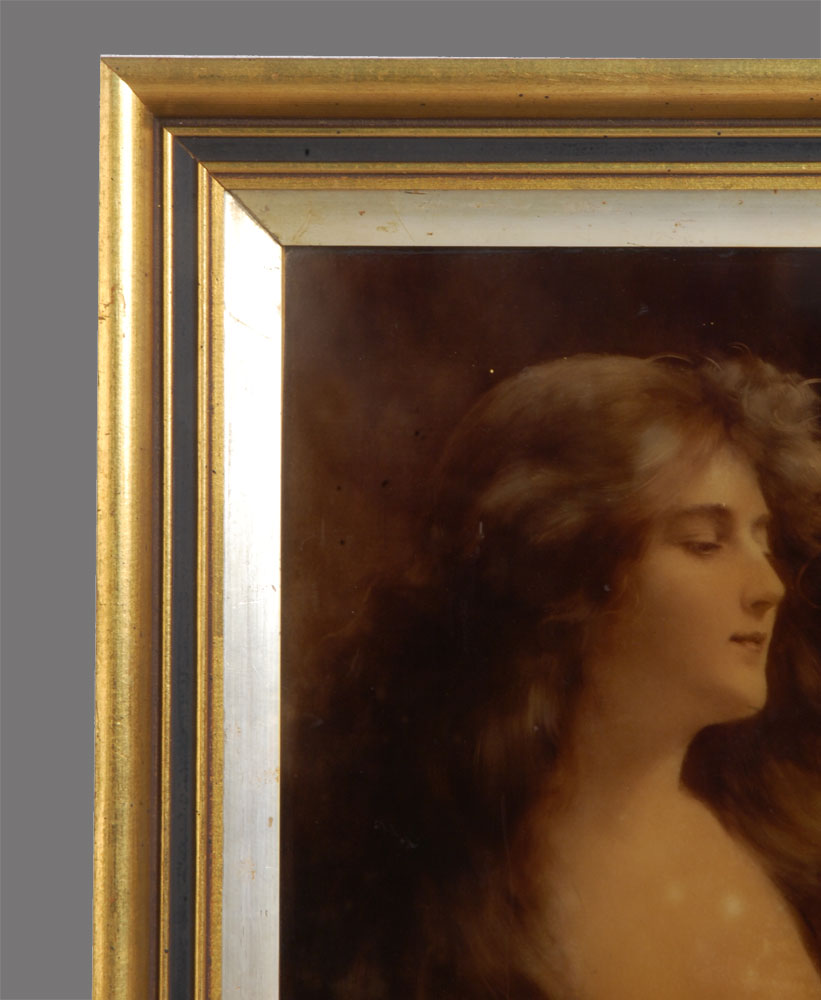 Product Description A late 19th century crystoleum, portrait of a maiden in gilt wood frame