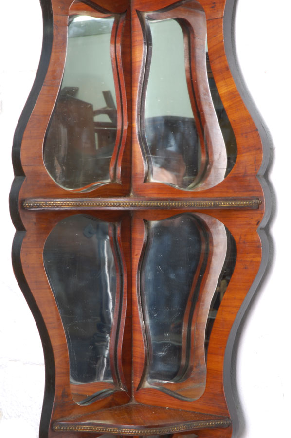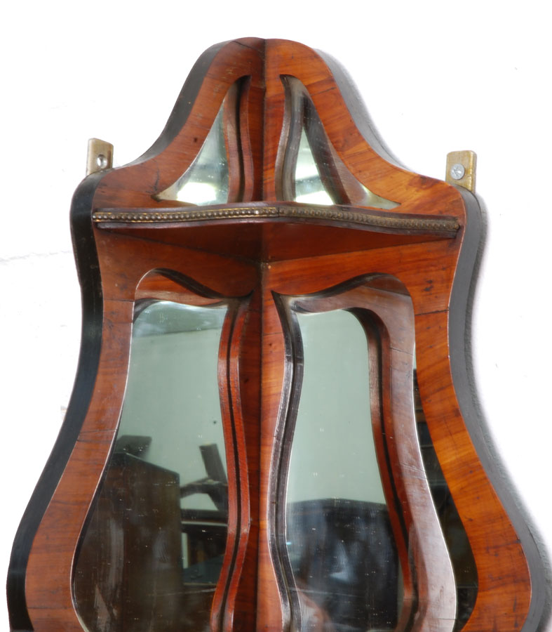 A Victorian Kingwood three-tier corner wall bracket having ormolu beading to edge and mirrored panels By Edwards& Roberts