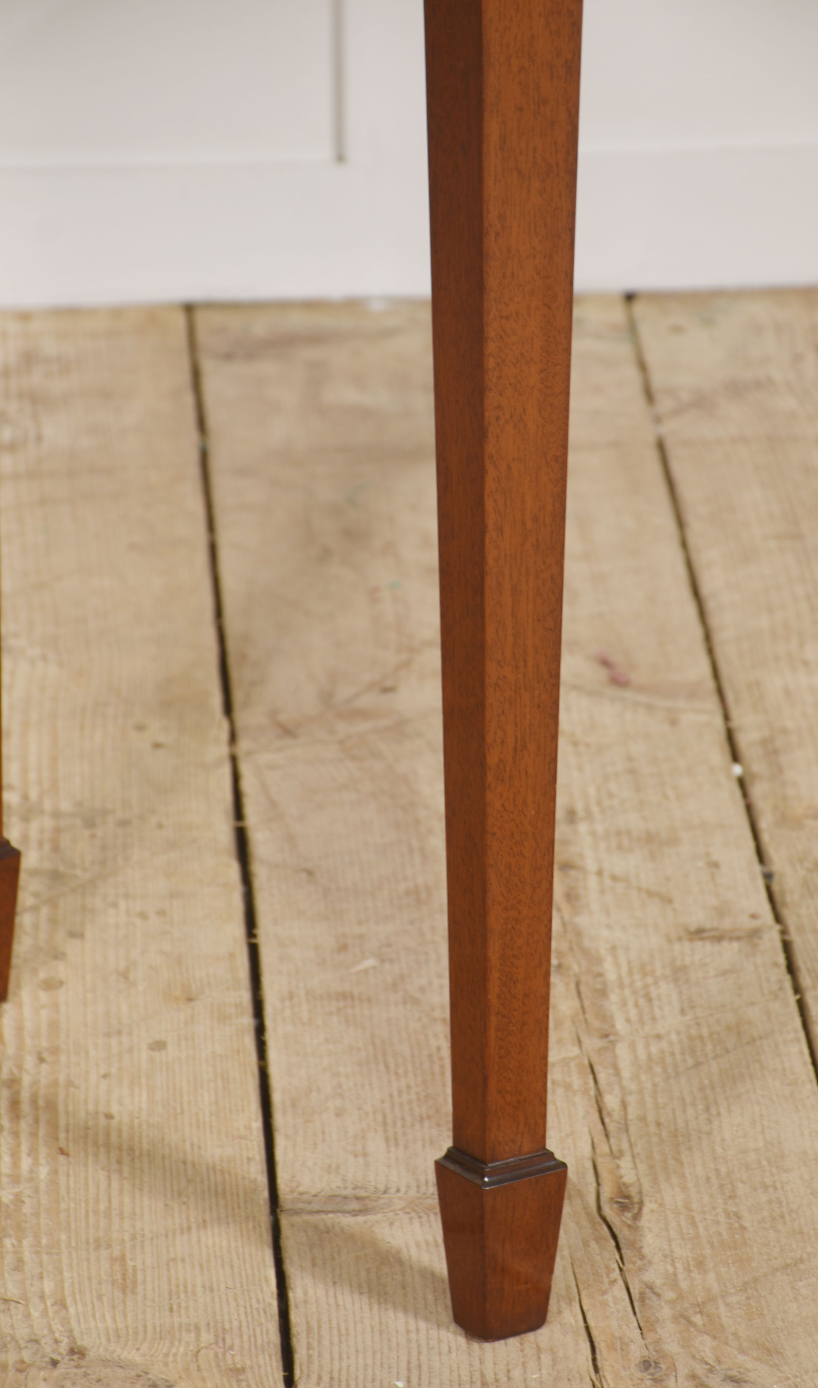 The table stands on four slender, square-section tapering legs terminating in neat spade feet, giving the piece a light and refined profile. The proportions are balanced and versatile, making it suitable as a side table, writing table, or hallway console.