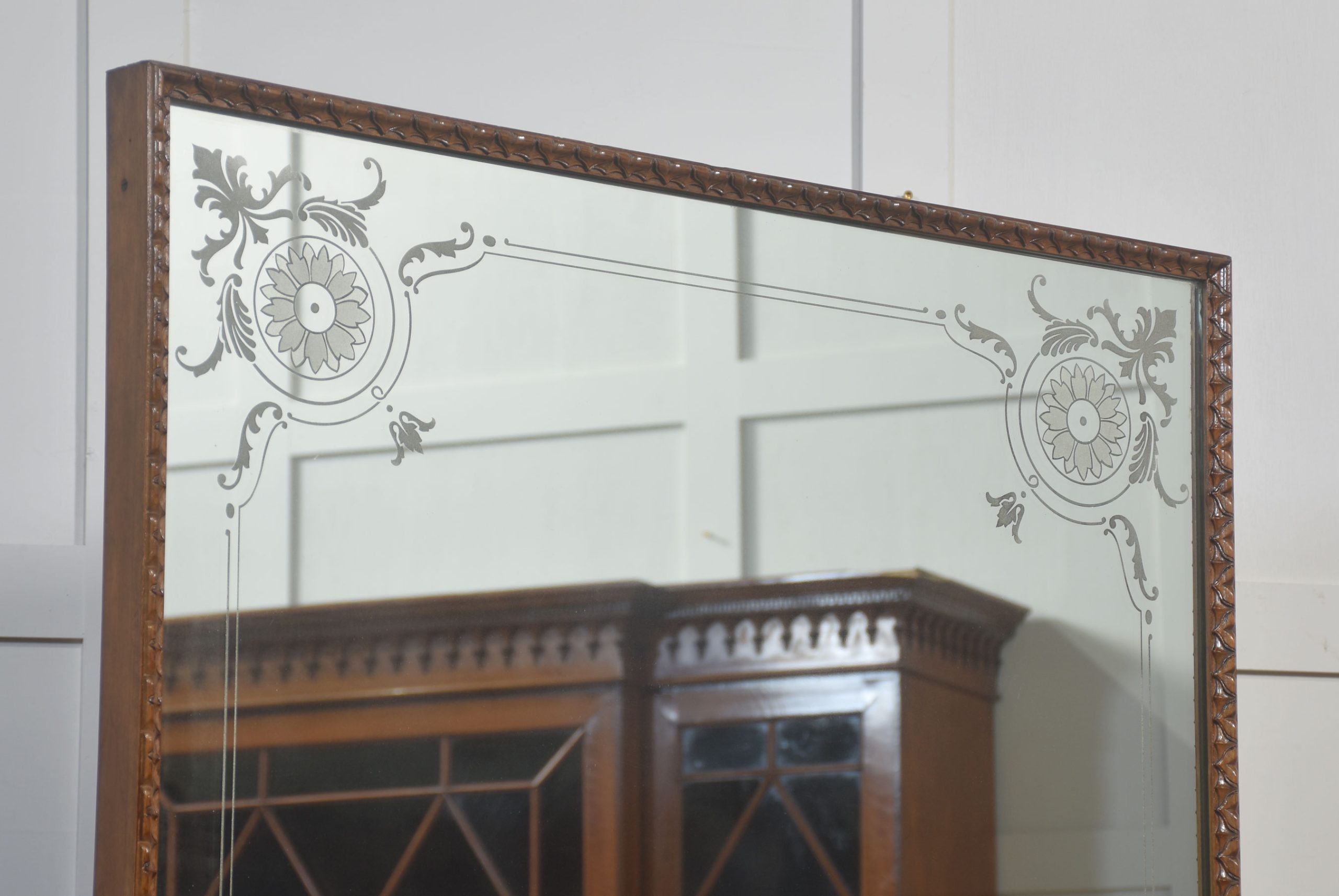 A magnificent late 19th-century mahogany dressing chest featuring a richly figured marble top and an imposing mirror supported by finely carved winged female caryatids. The large mirror is framed in carved mahogany and embellished with etched floral corner motifs, adding refinement and period character.