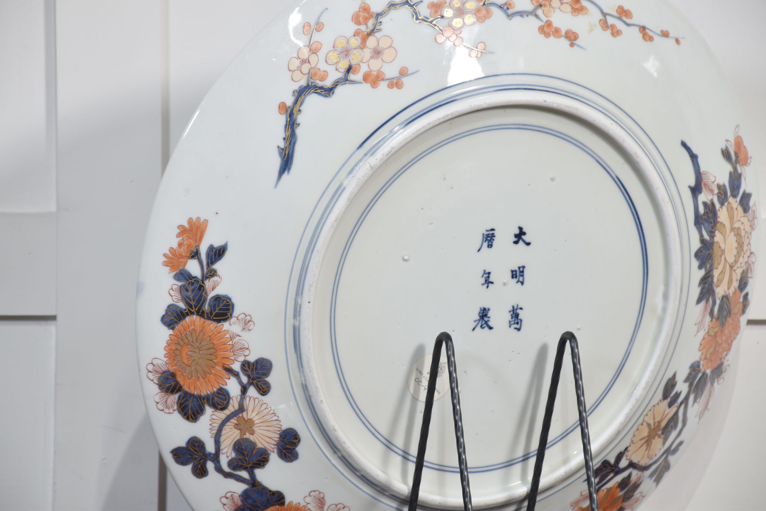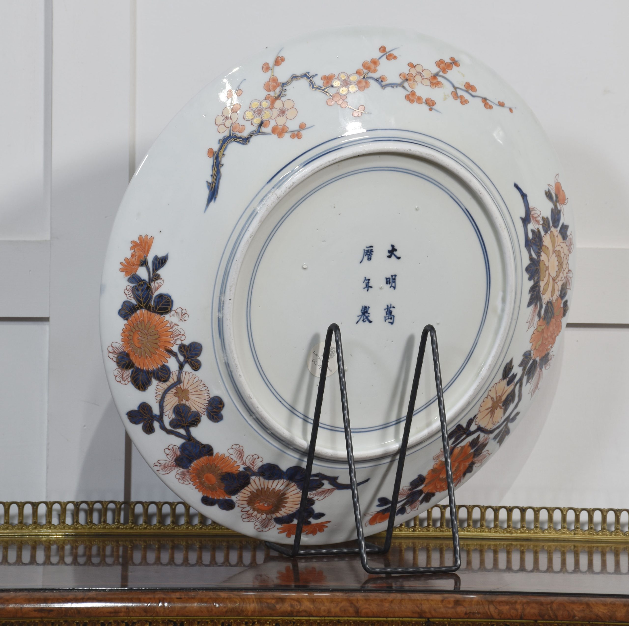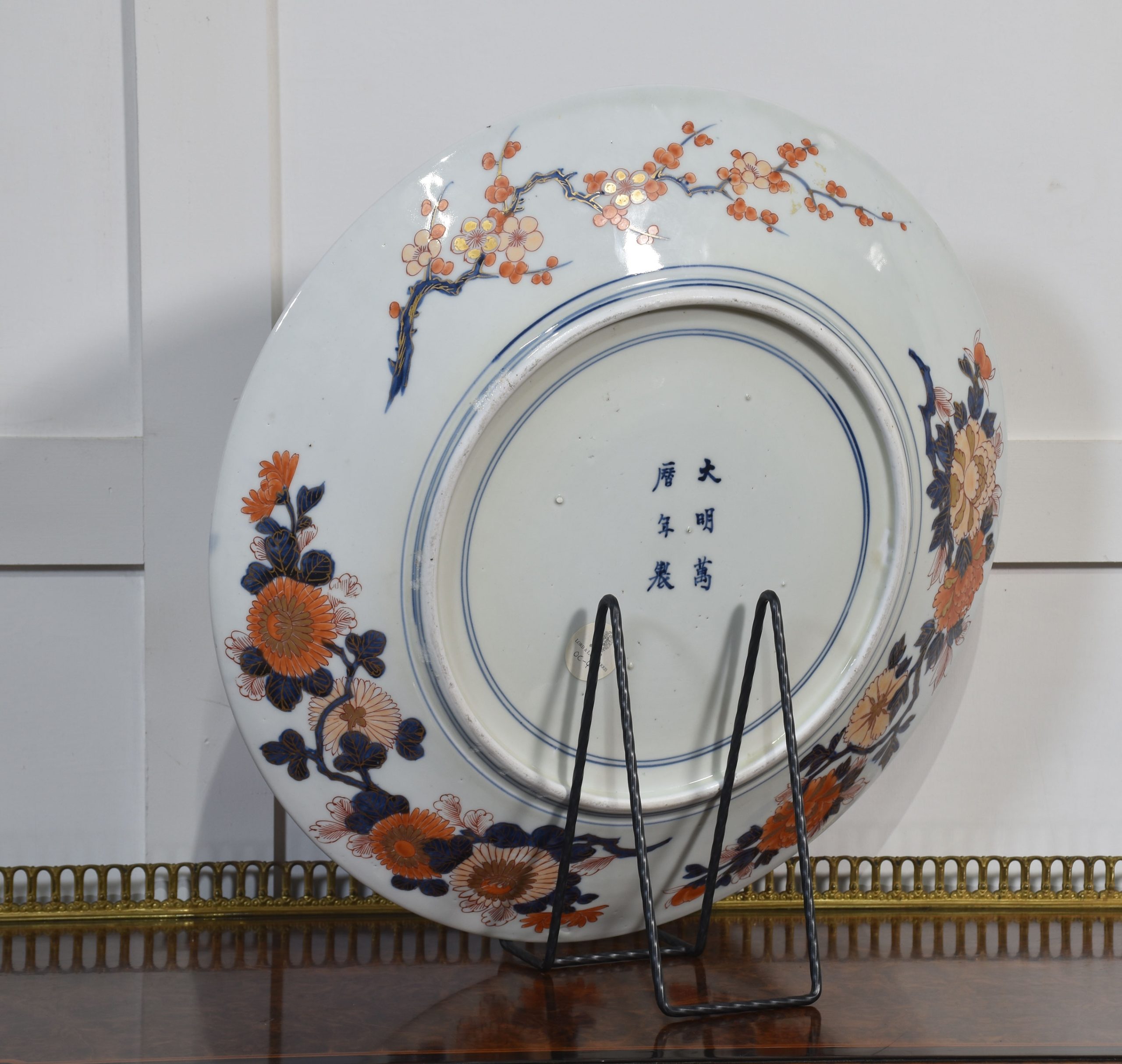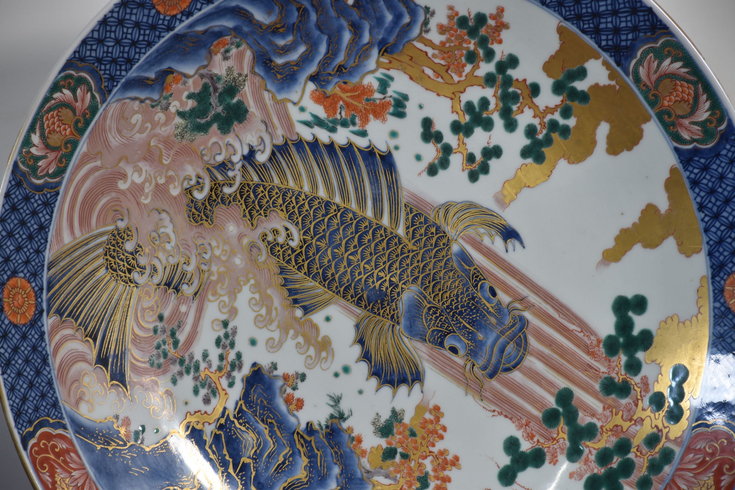 Japanese Imari plate, decorated with a leaping carp in traditional colours, heightened in gilt, six-character mark to the underside.