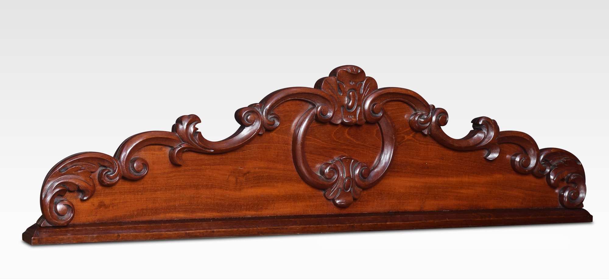 Mahogany overdoor pediment the carved centre above foliating scrolling ends.