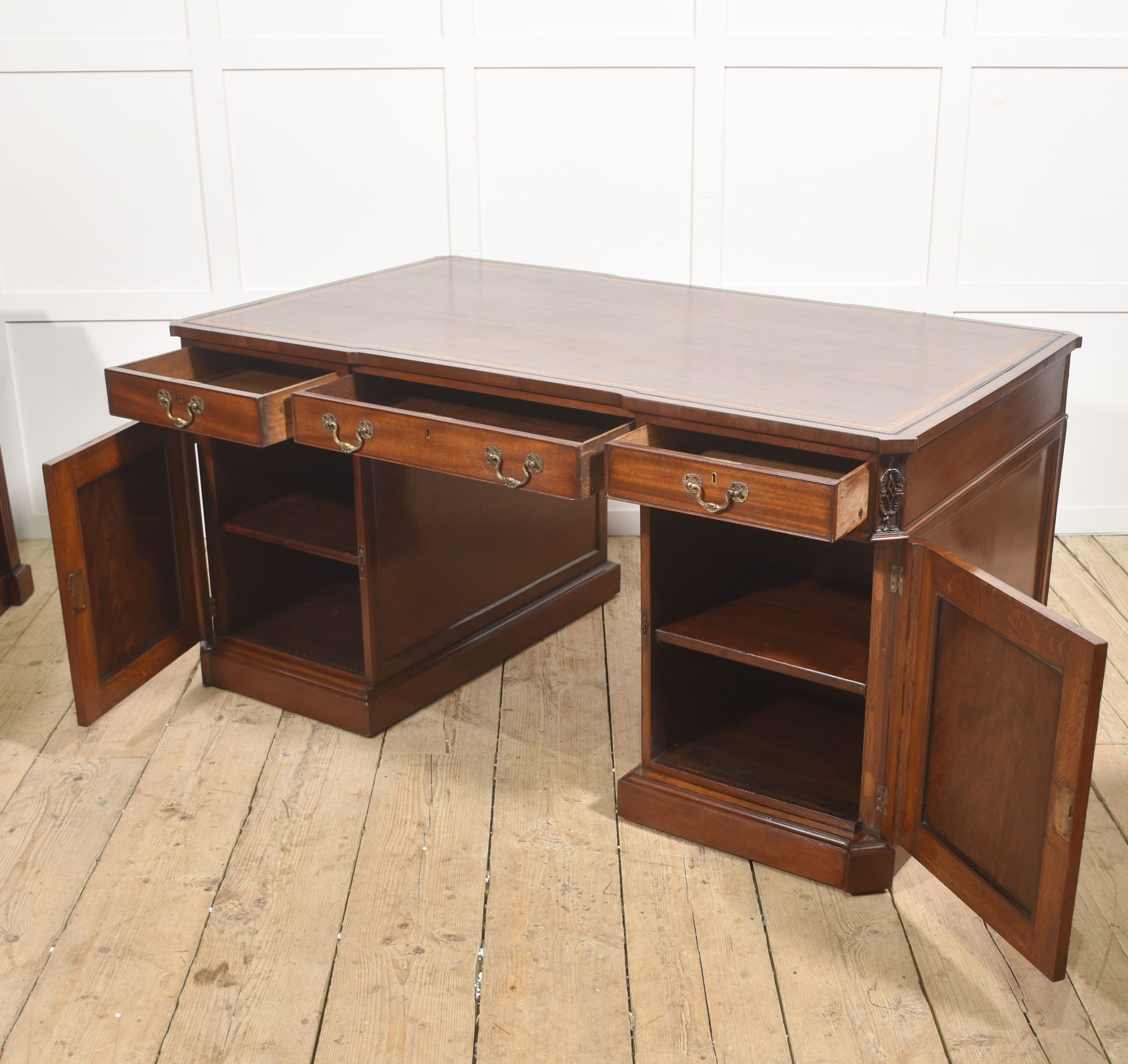 Mahogany Partner’s Pedestal Desk with Tooled Leather Top