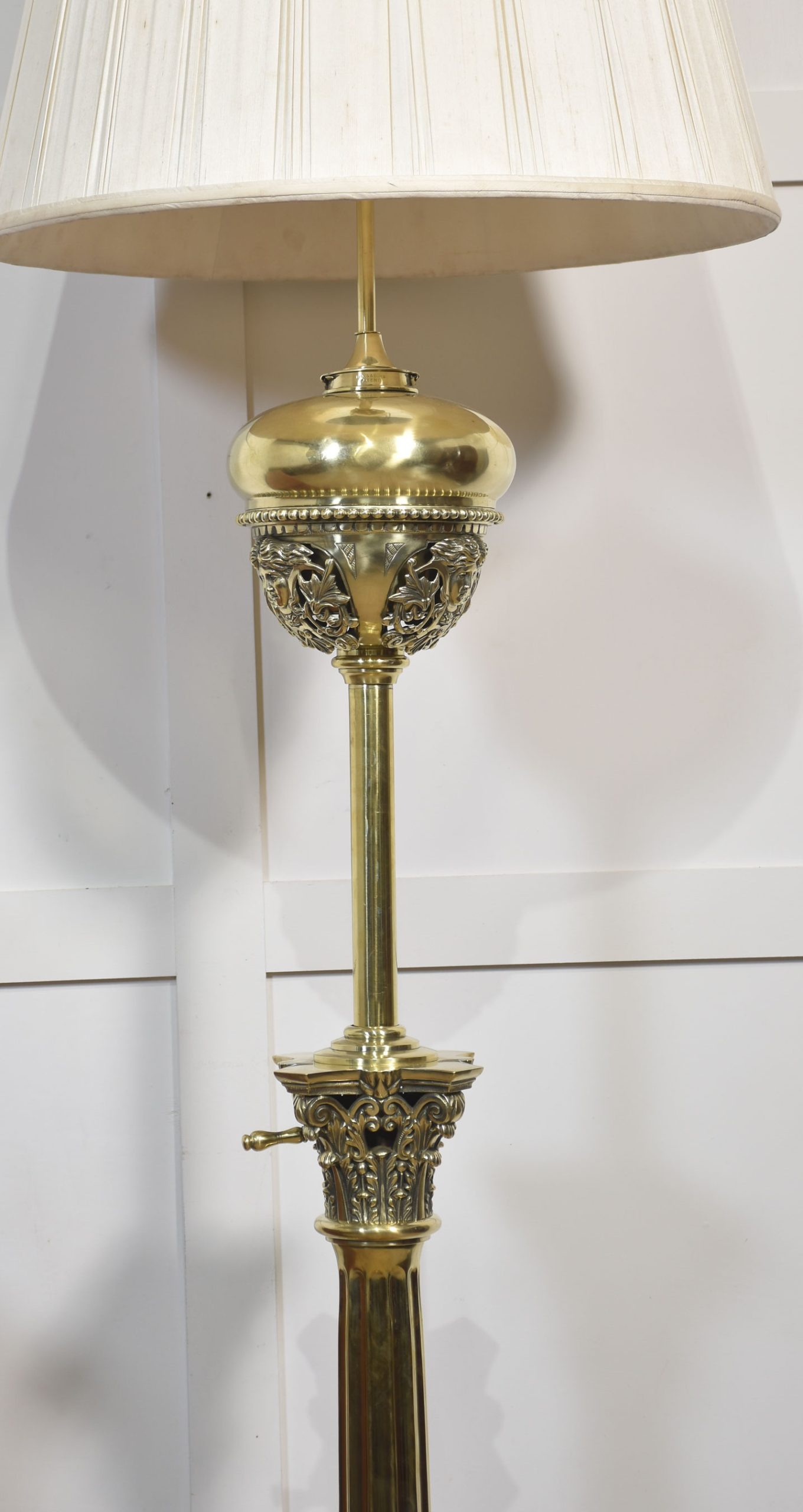 Monumental brass standard lamp by Hinks