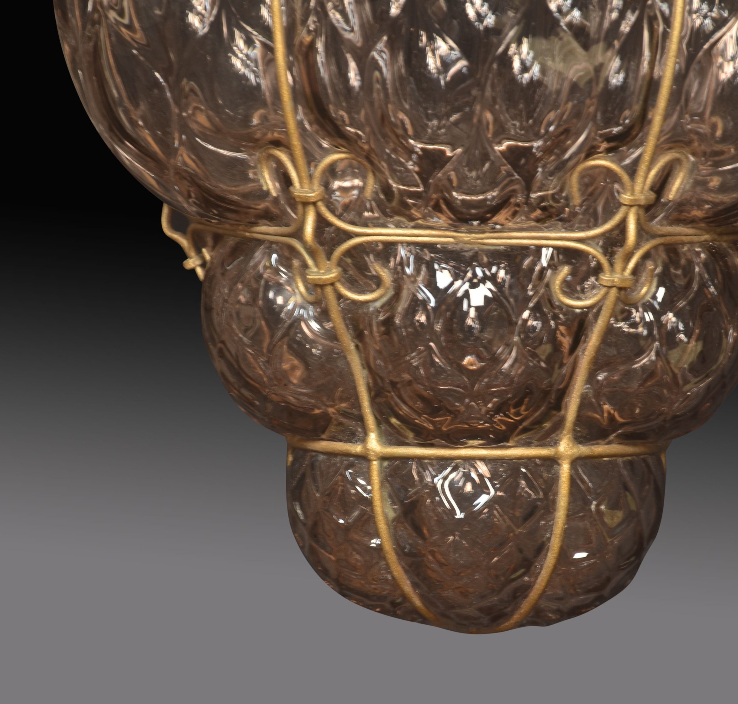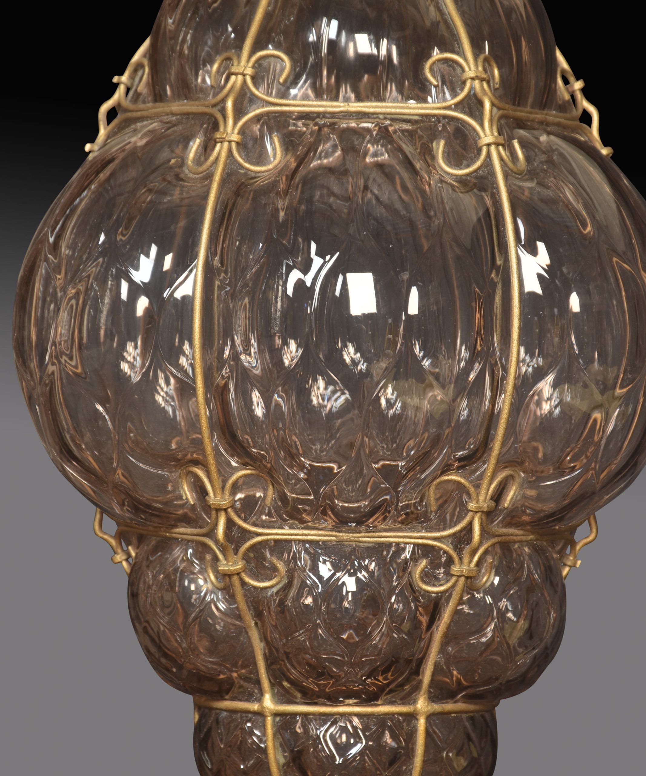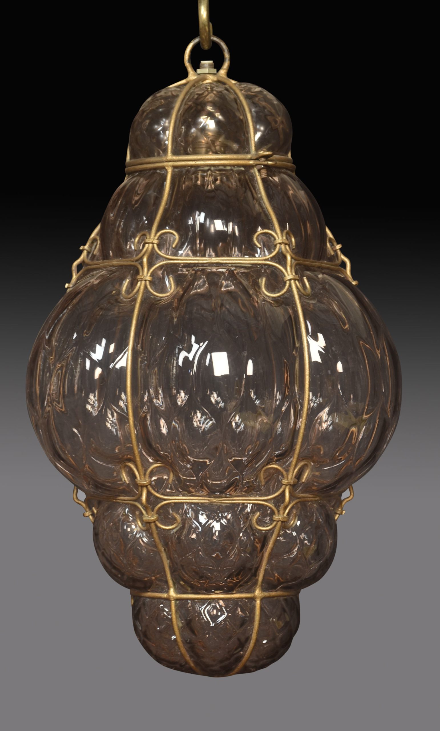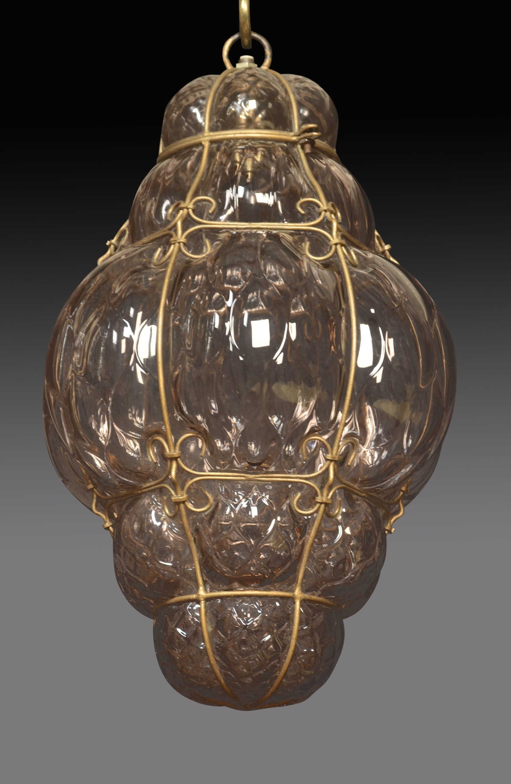 Seguso Murano hand-blown purple Glass Caged Pendant Light.