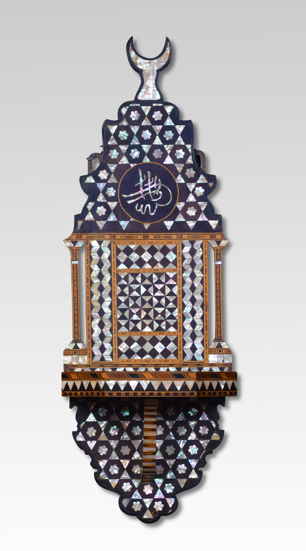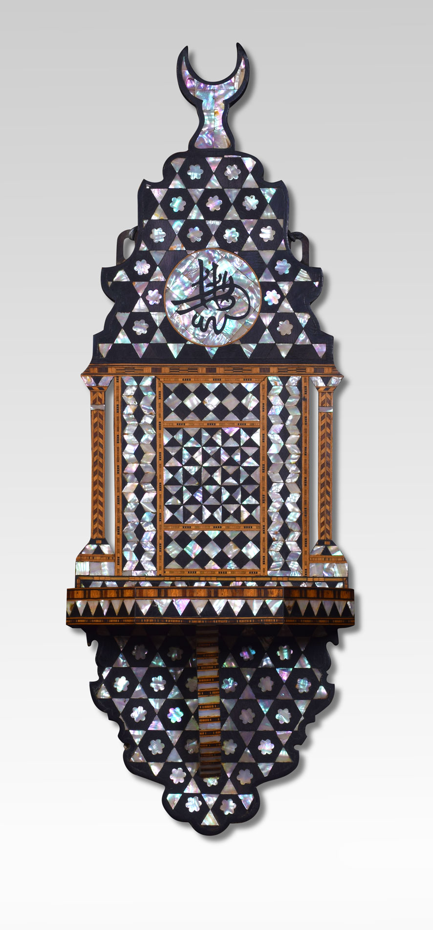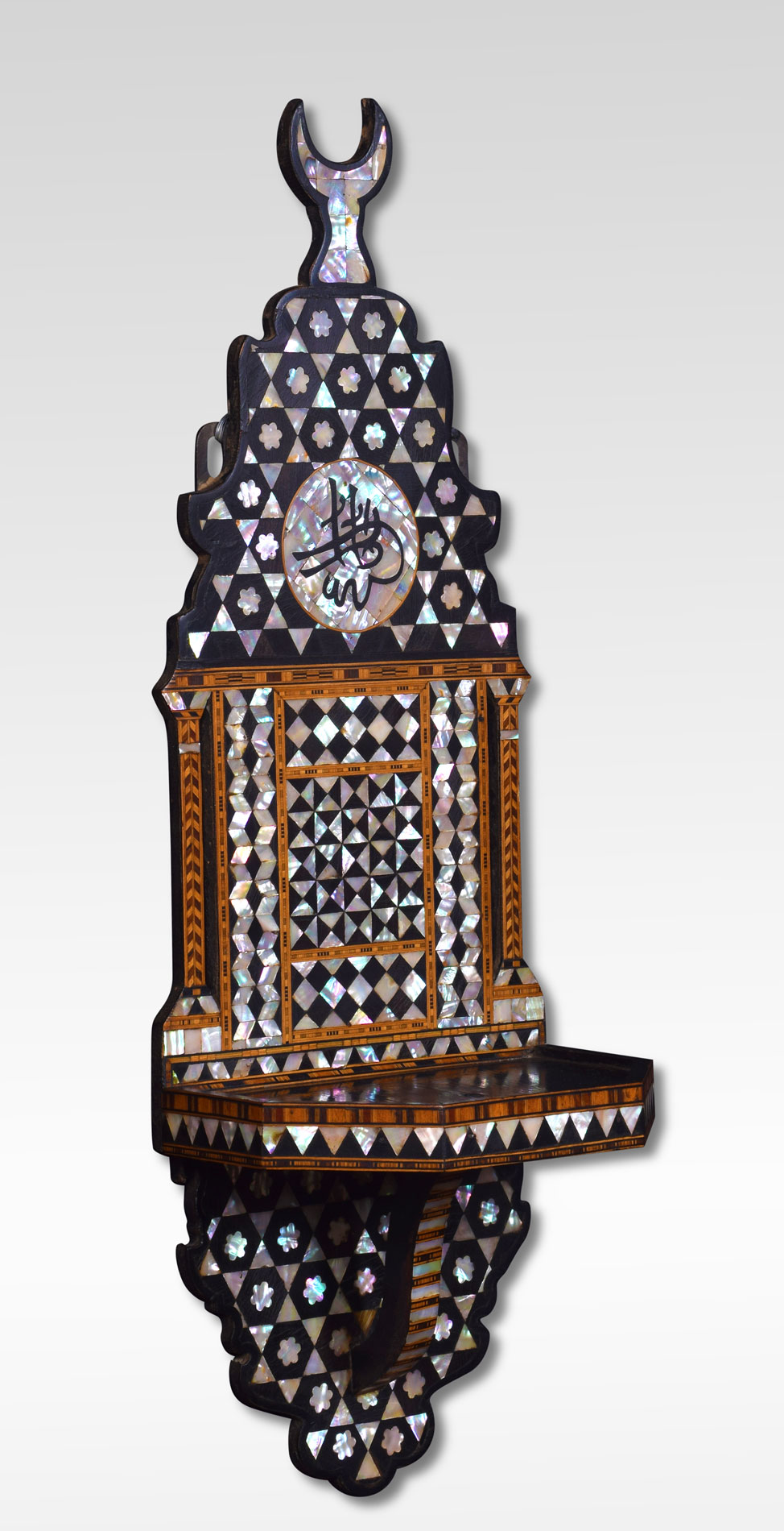 Near Pair of moorish hardwood mother of pearl bone inlaid wall bracket