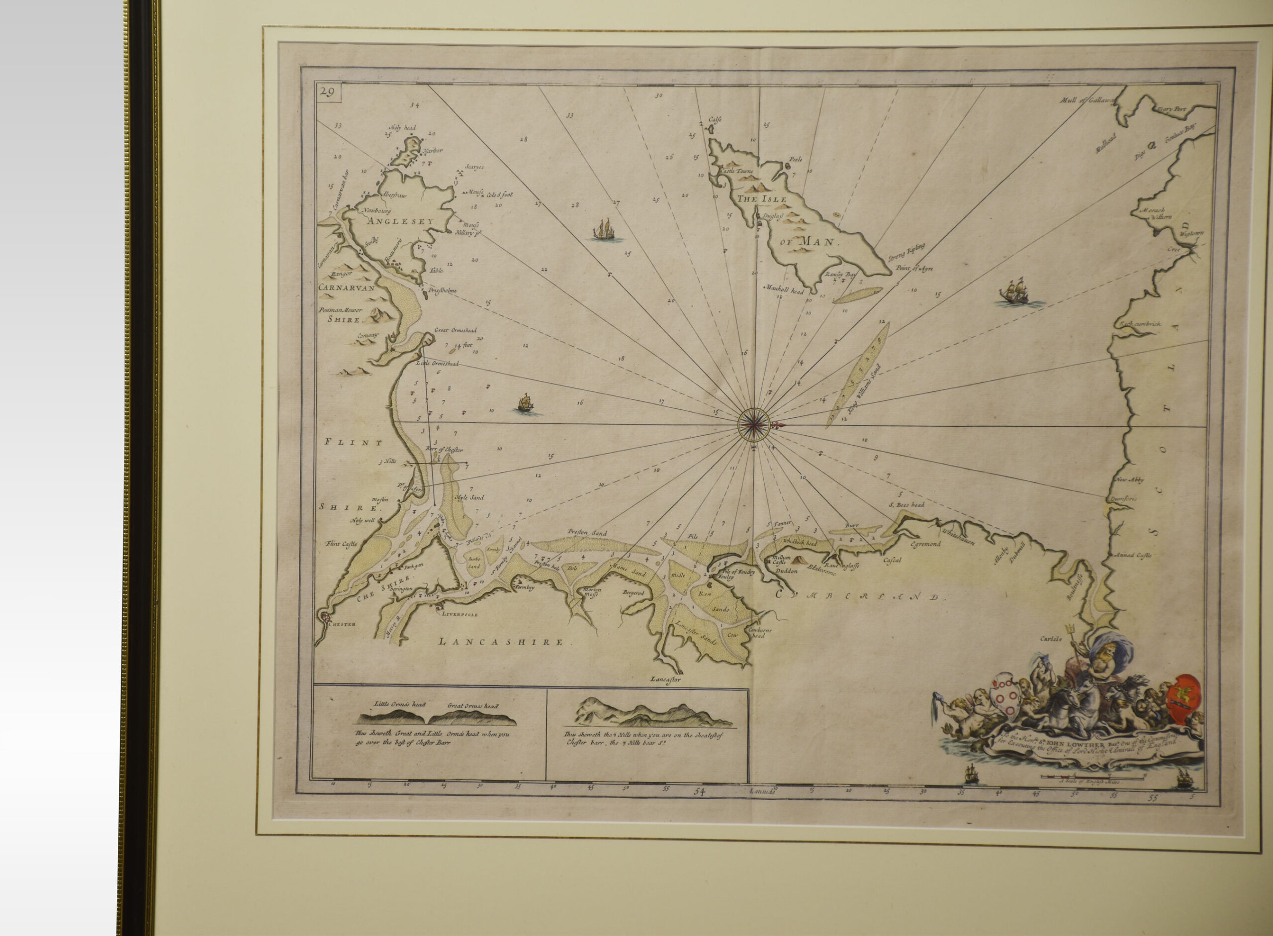 Greenville Collins Northwest Coast and Isle of Man. hand coloured chart, encased in an ebonised frame.