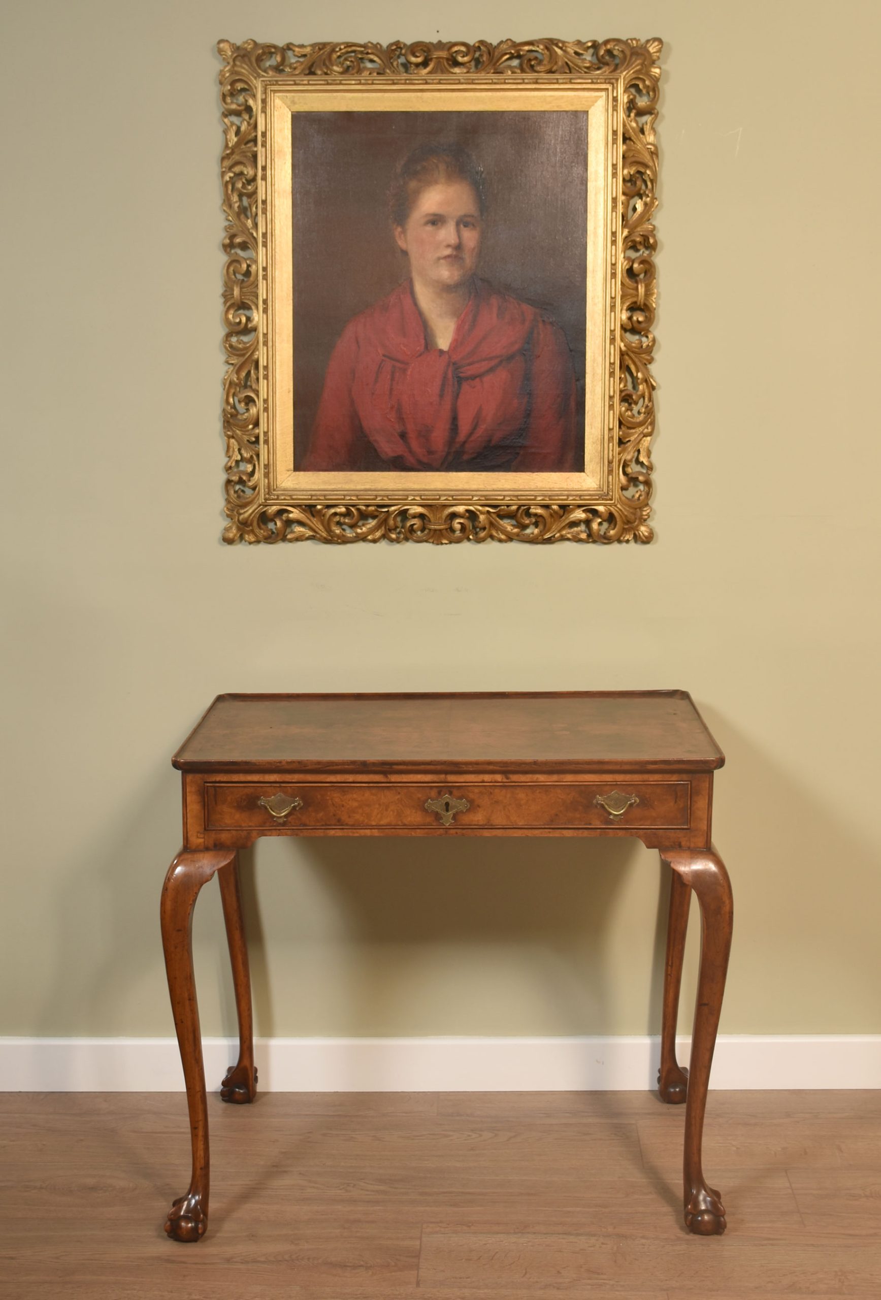 An oil on canvas, portrait of a Lady Signed GRANT 1889. The Florentine gilt wood frame with scrolling leaf decoration.