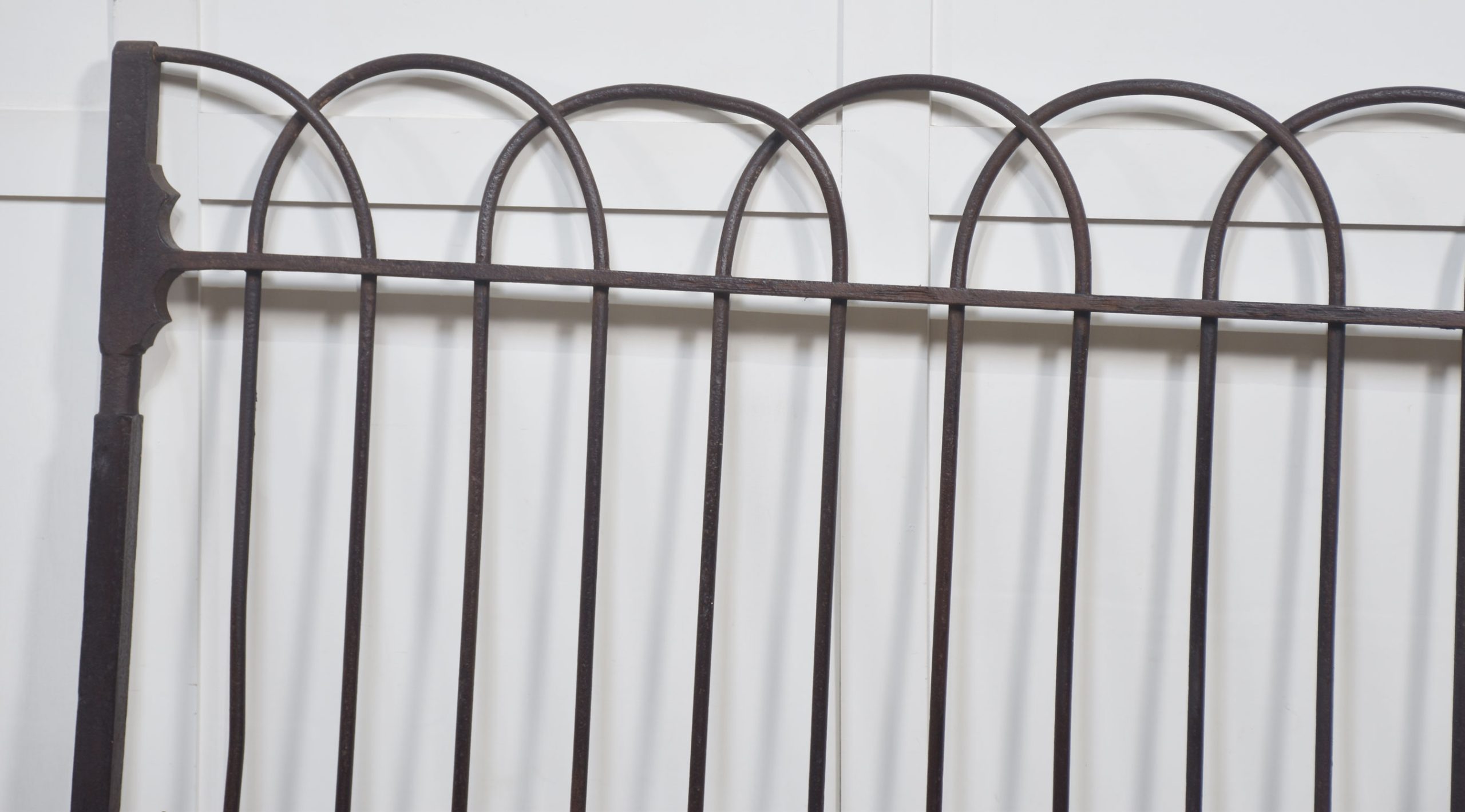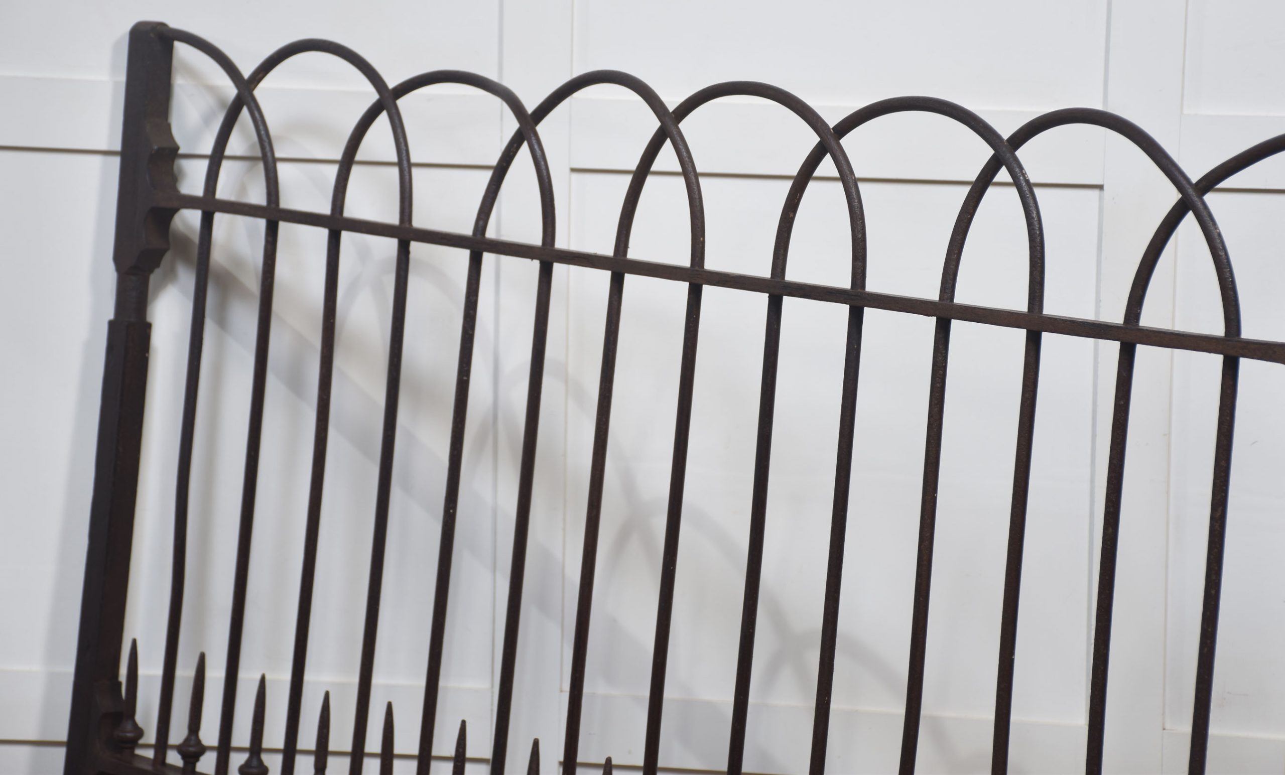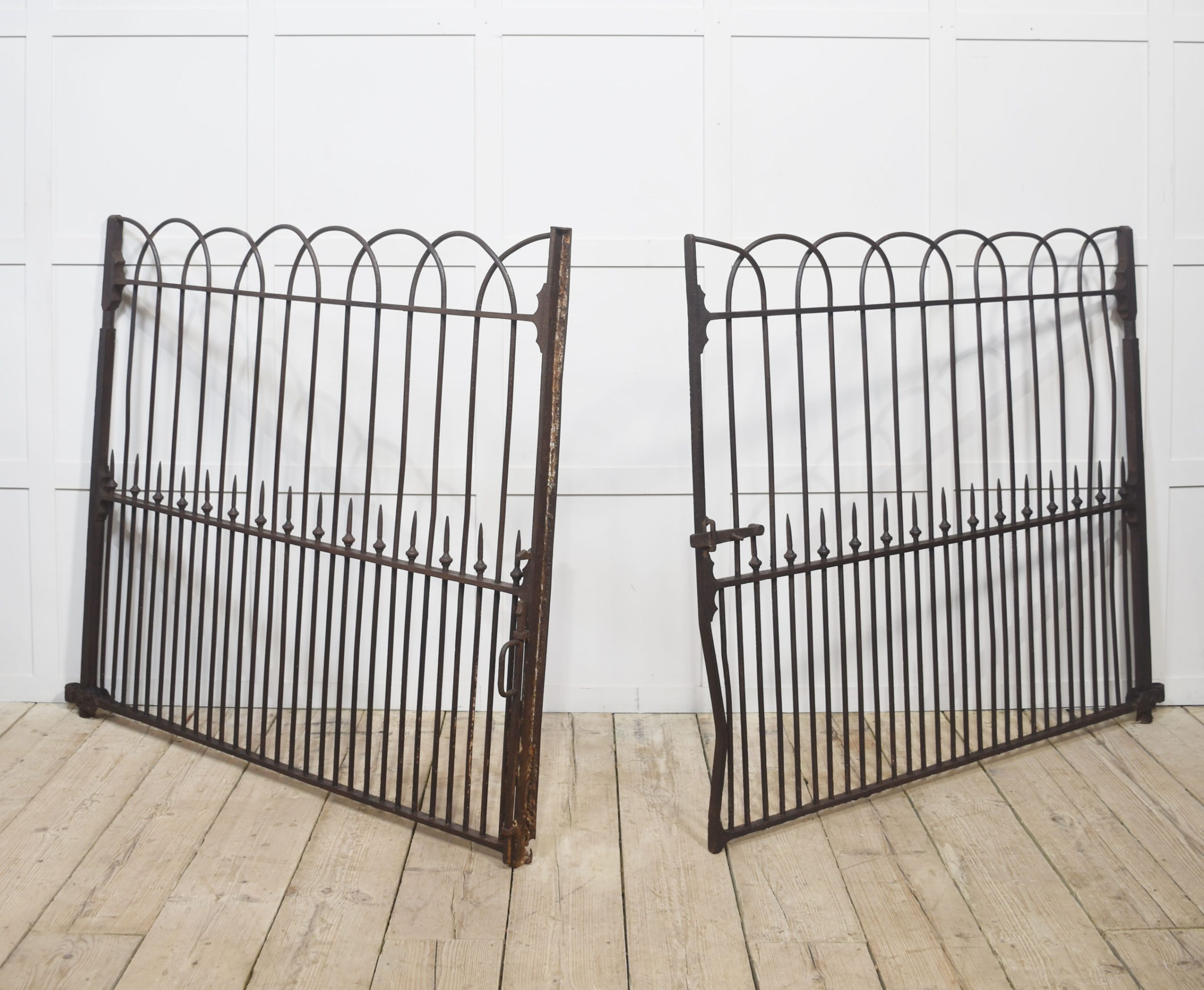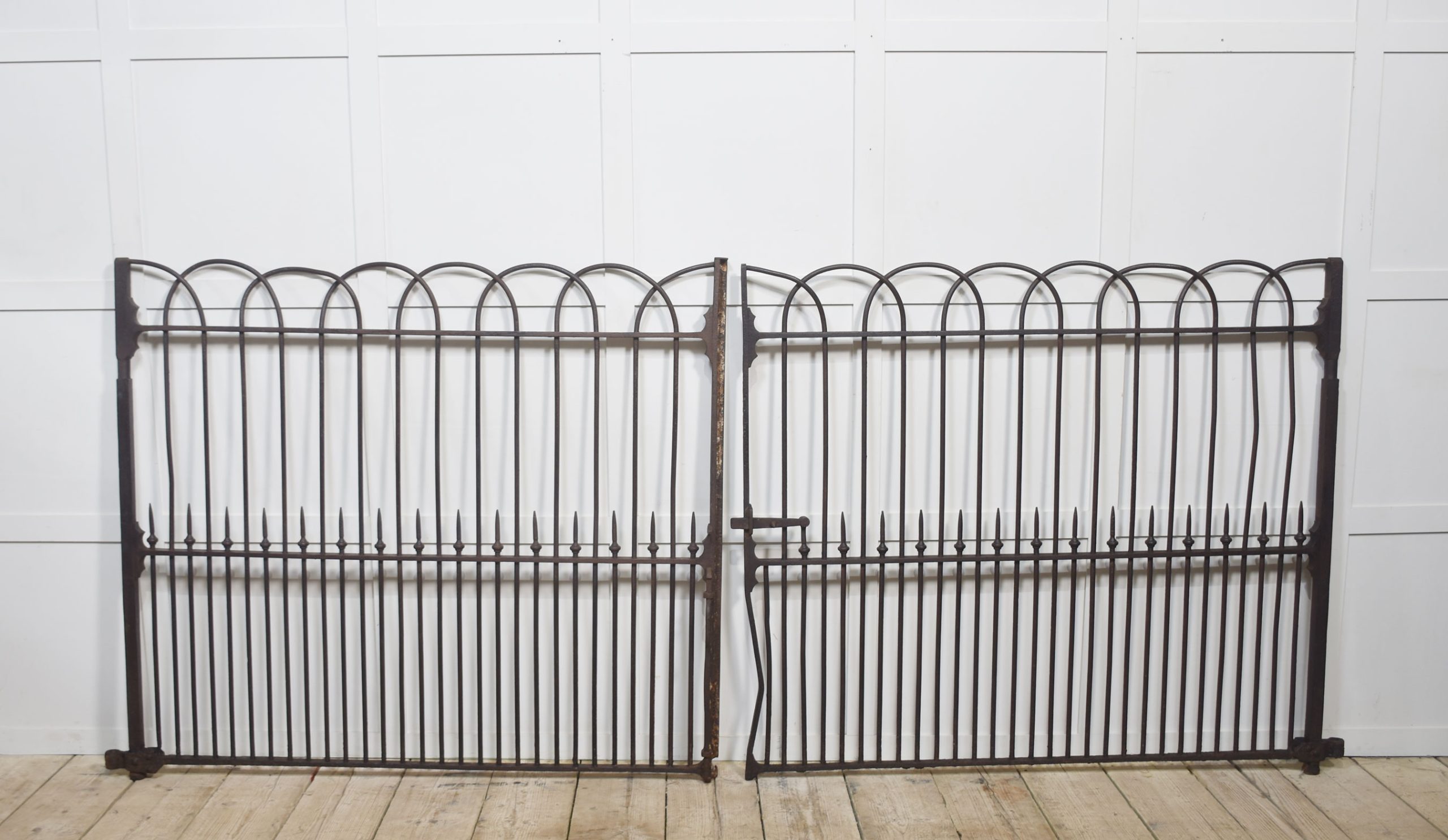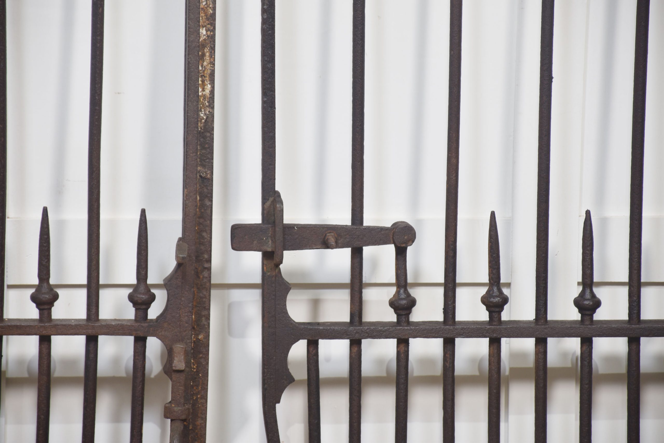 Pair of 19th-century five-foot cast and wrought iron driveway gates, having original latch and vertical rails.