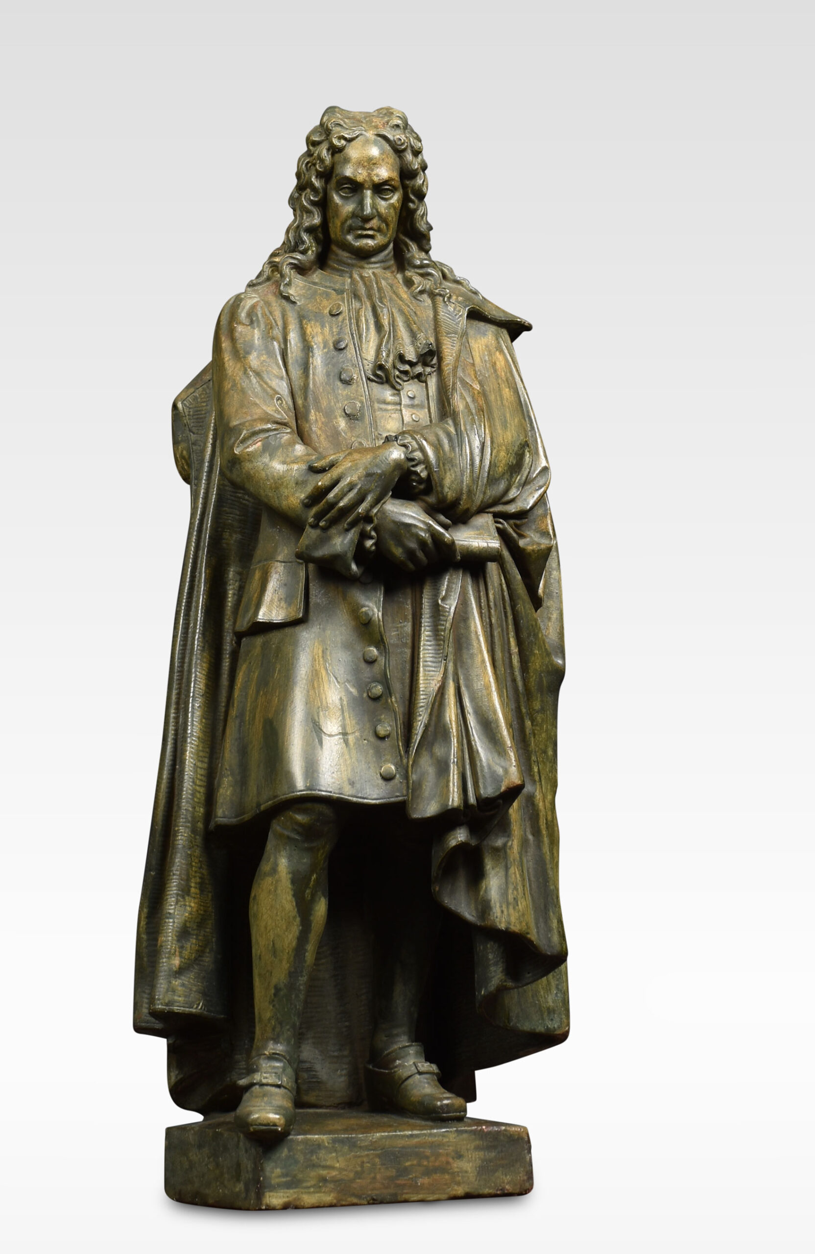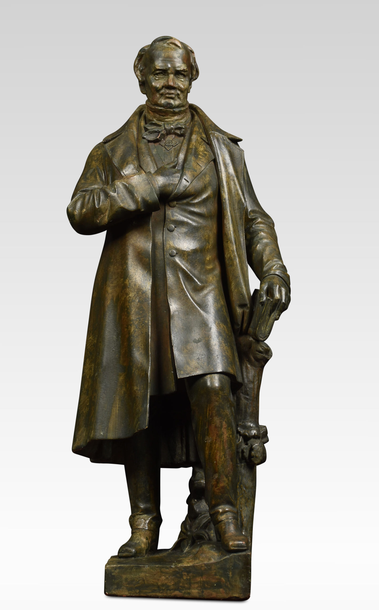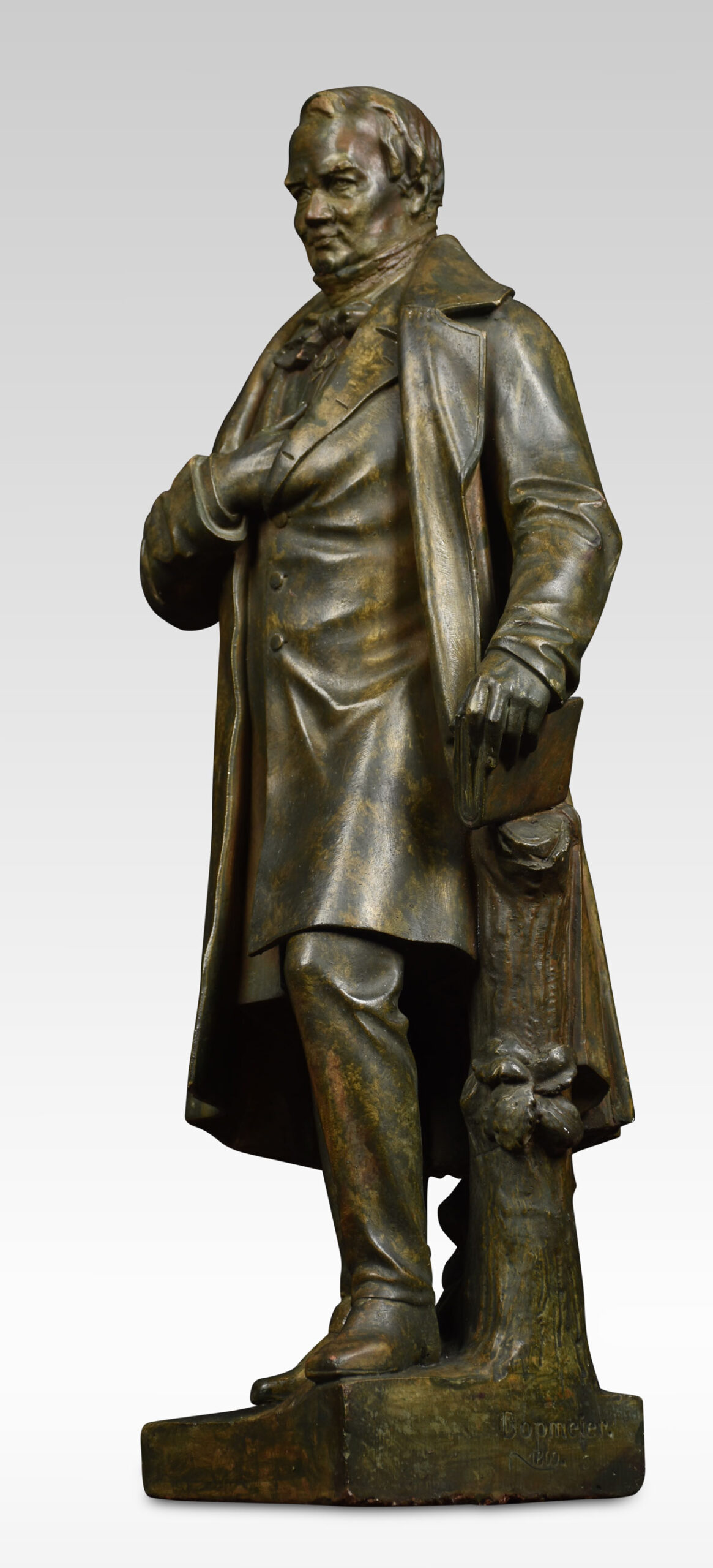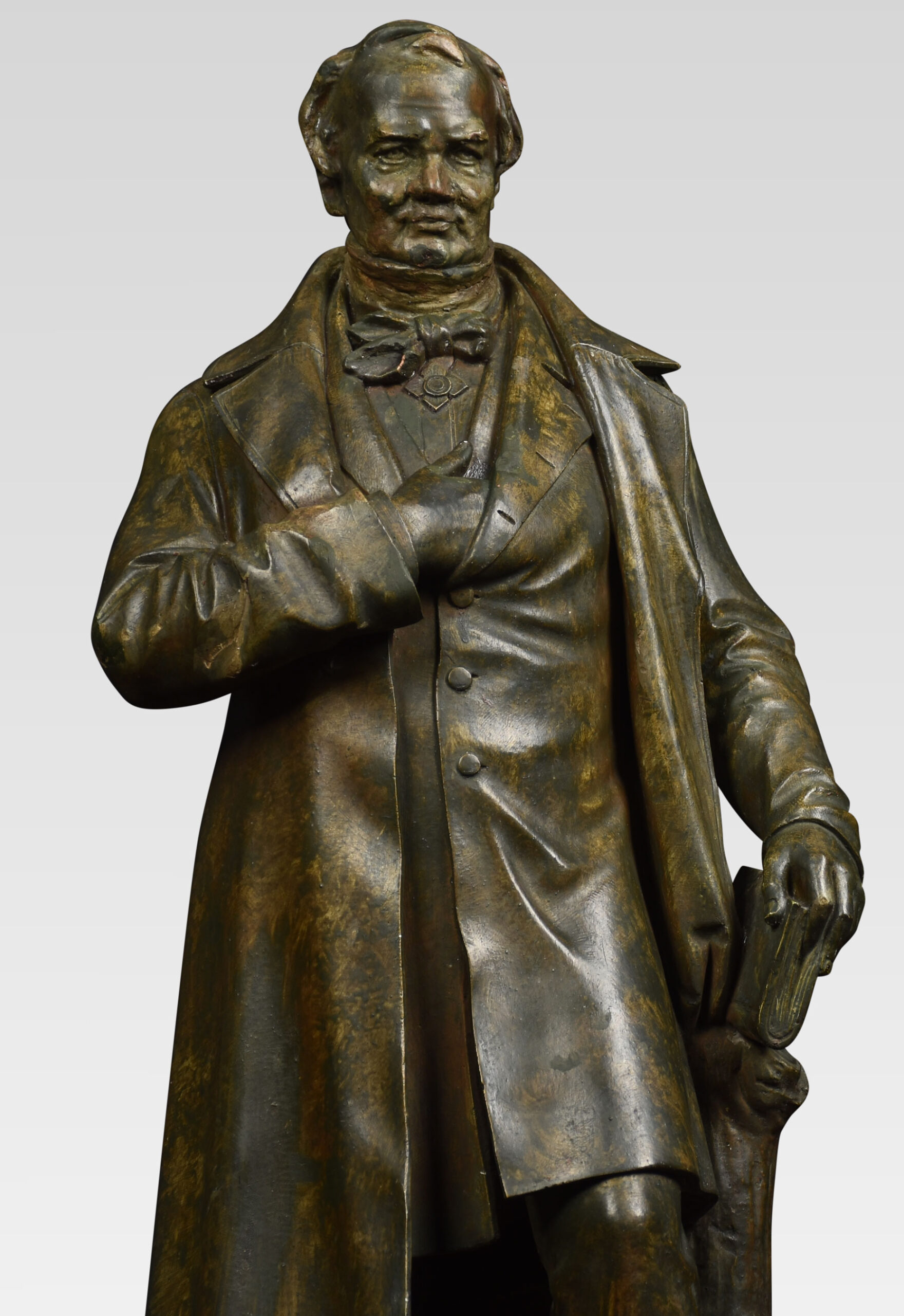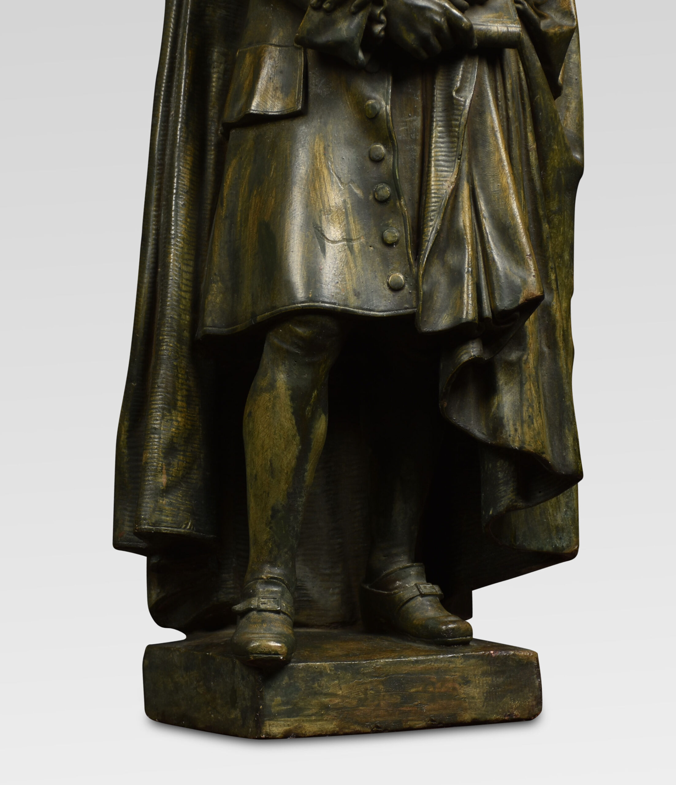 A pair of 19th century chalked bronzed figures in typical dress raised up on square bases