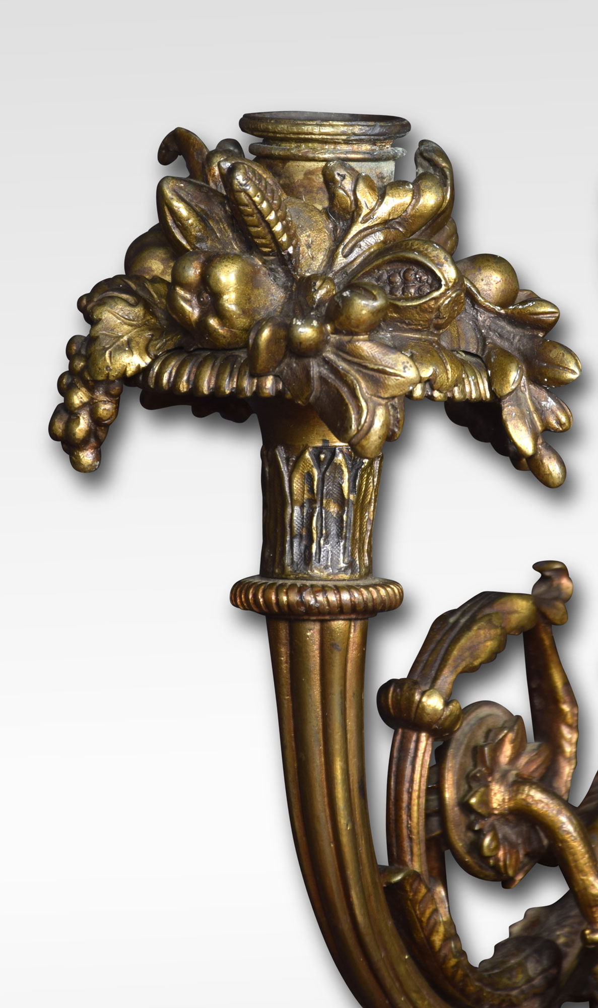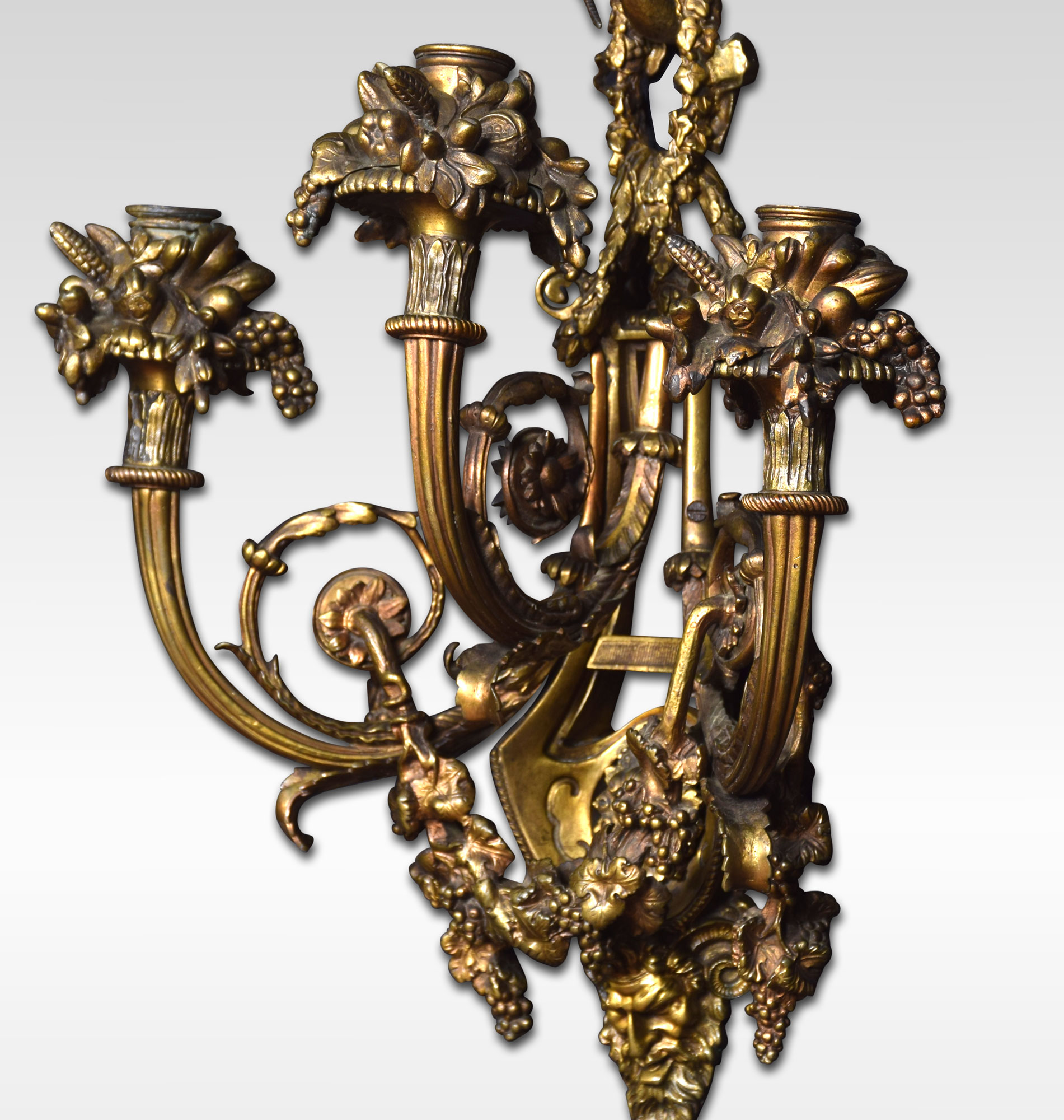 Pair of important French Louis XIV style gilt bronze three arm wall sconces