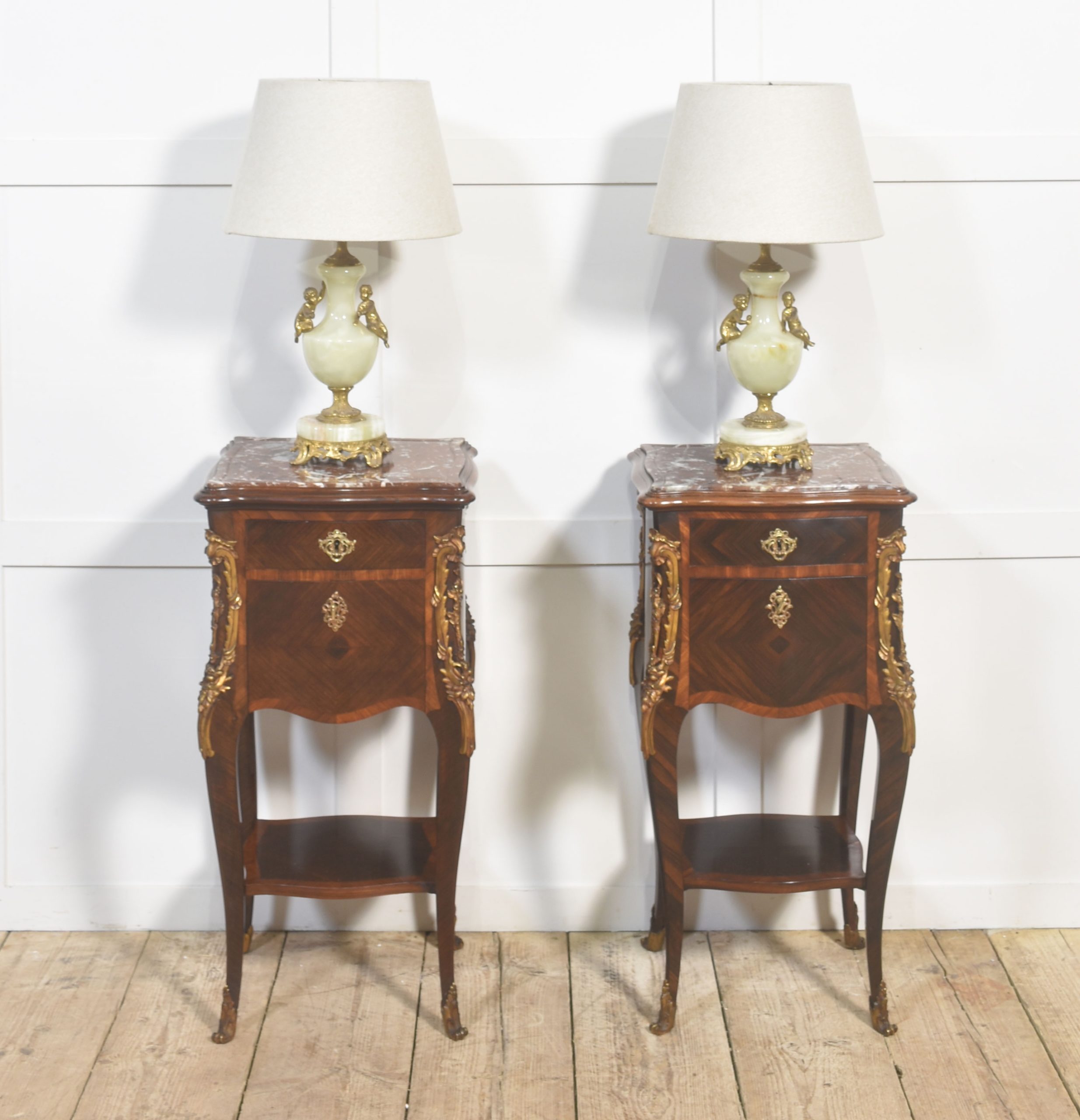 Pair of Louis XV–Style Marble-Top Bedside Cabinets