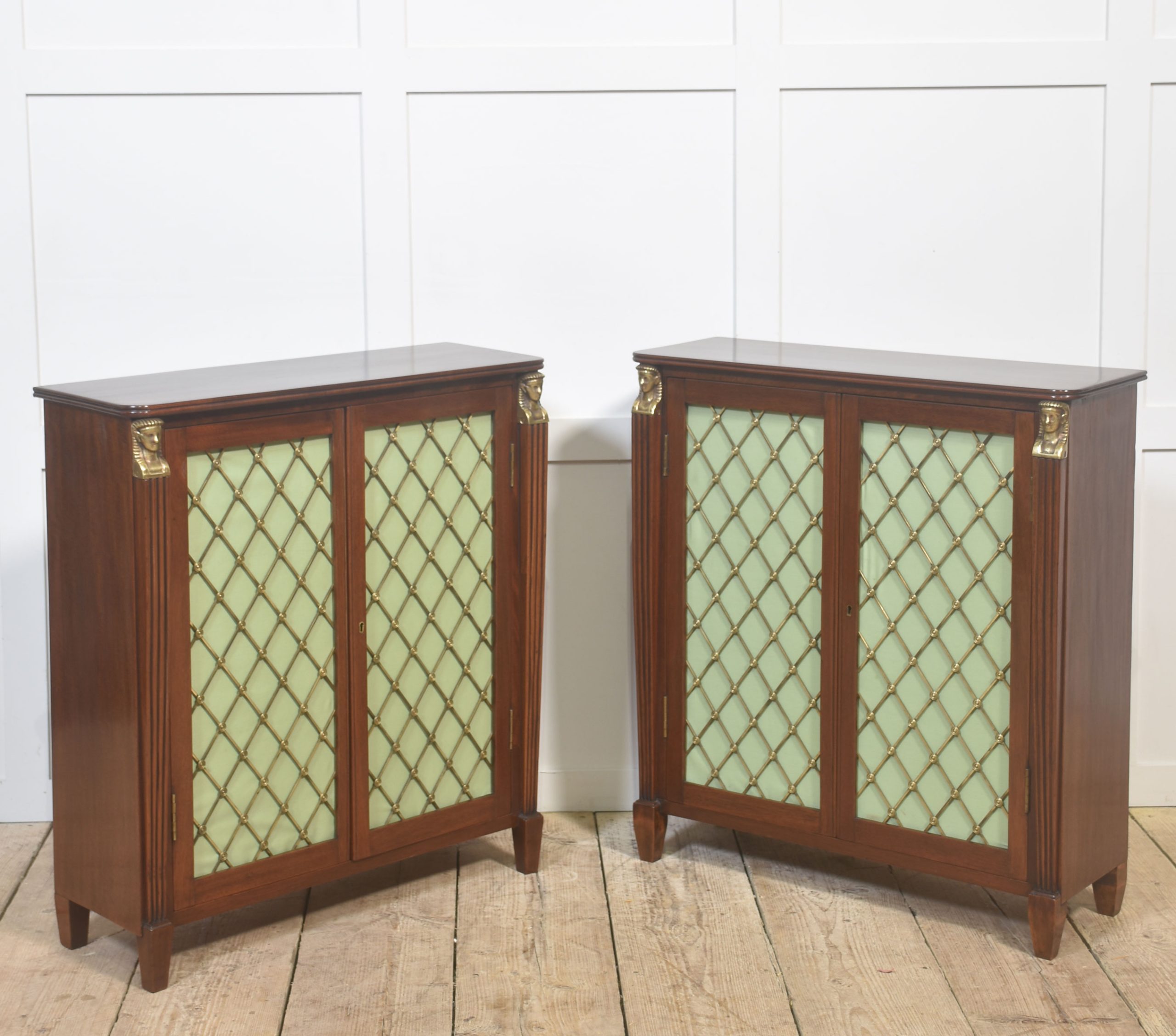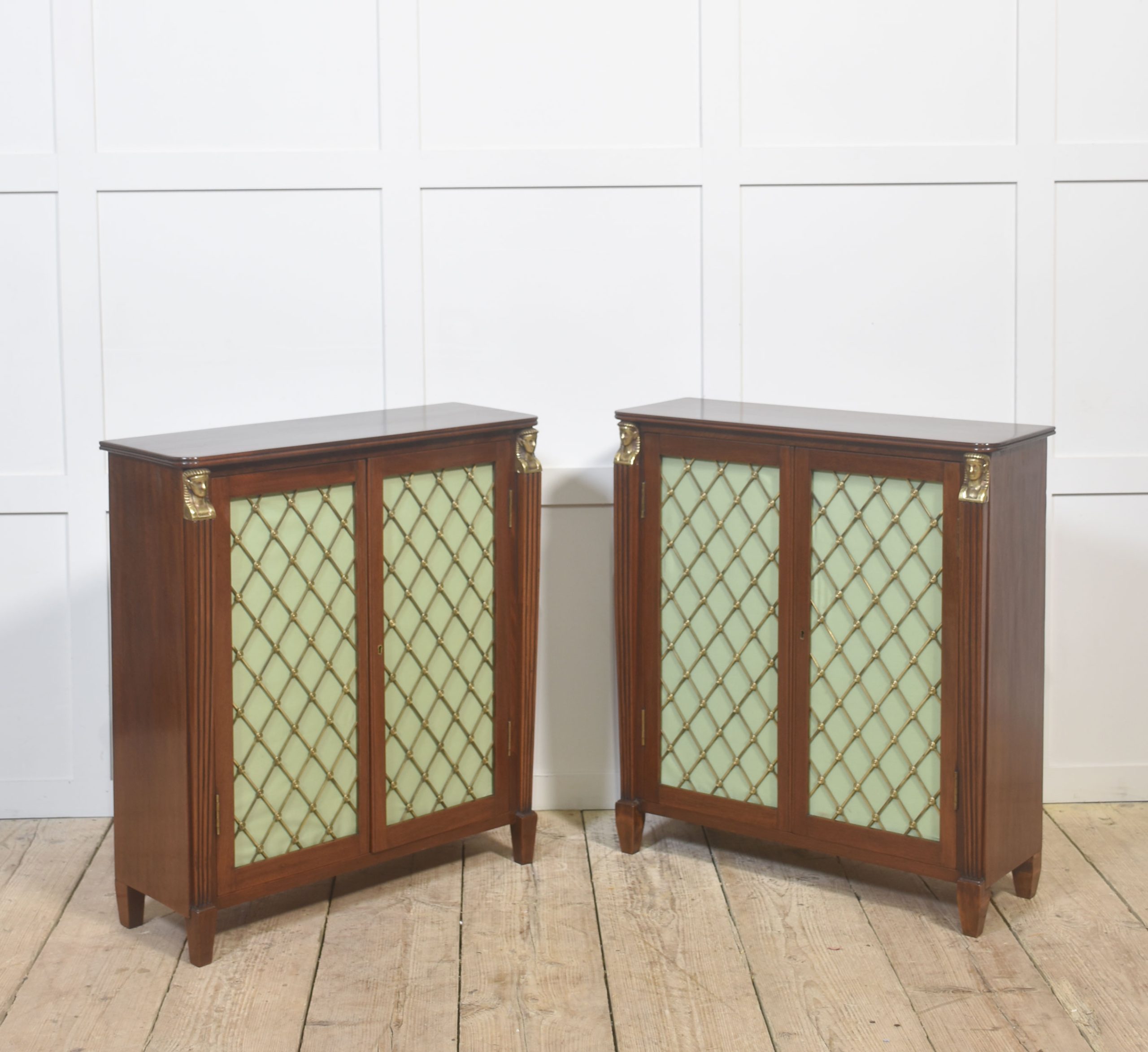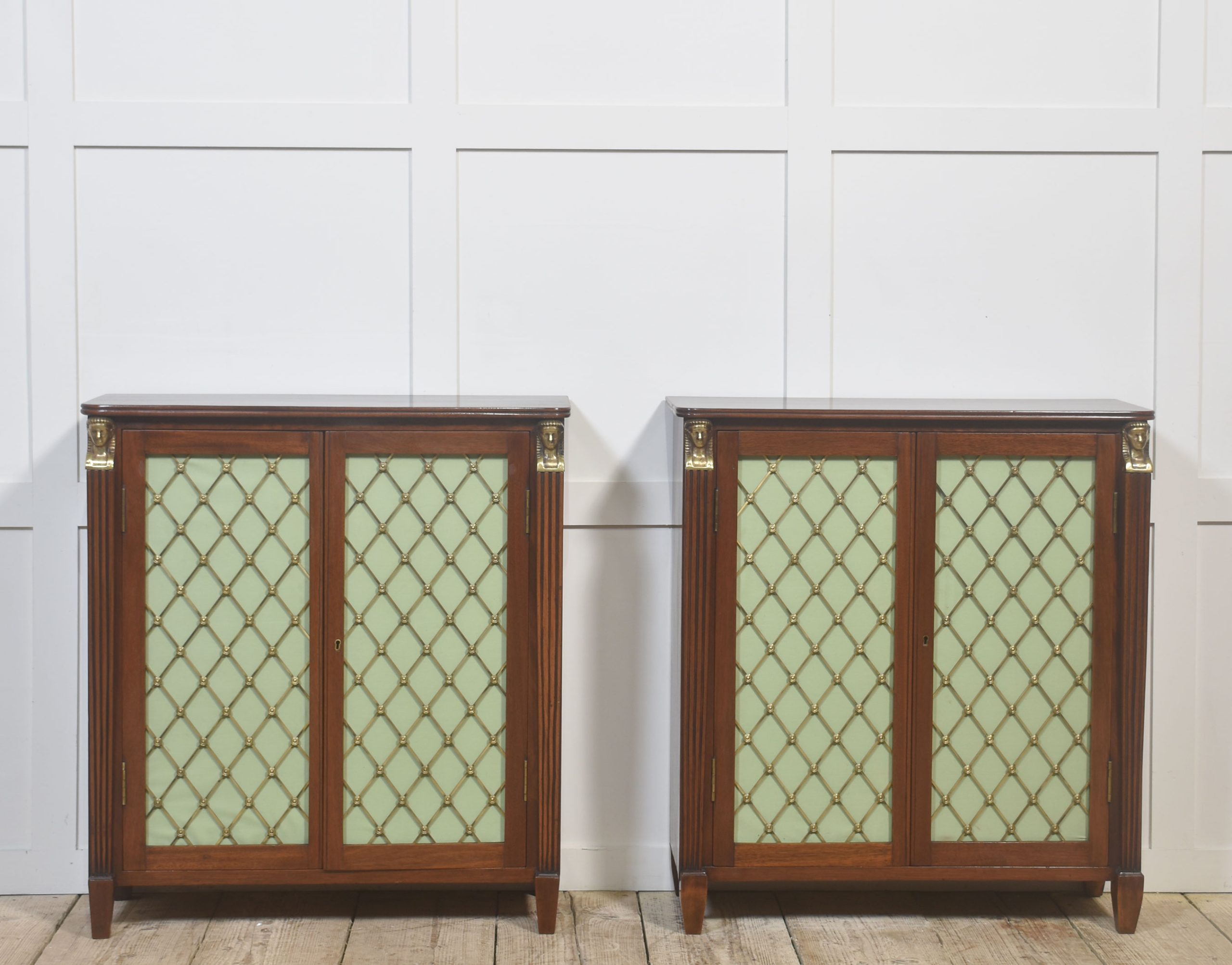 Pair of Regency-Style Mahogany Cabinets with Brass Lattice Doors