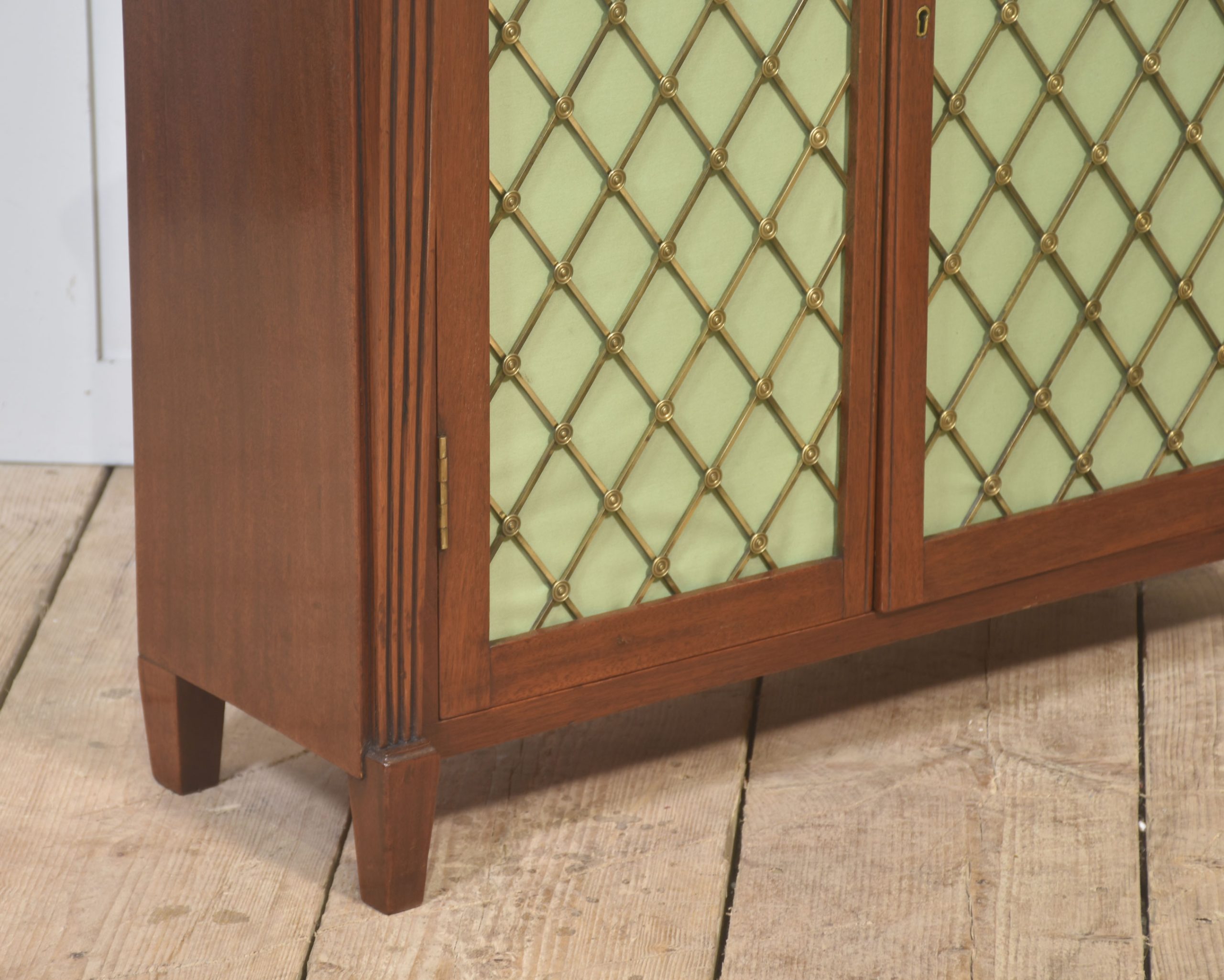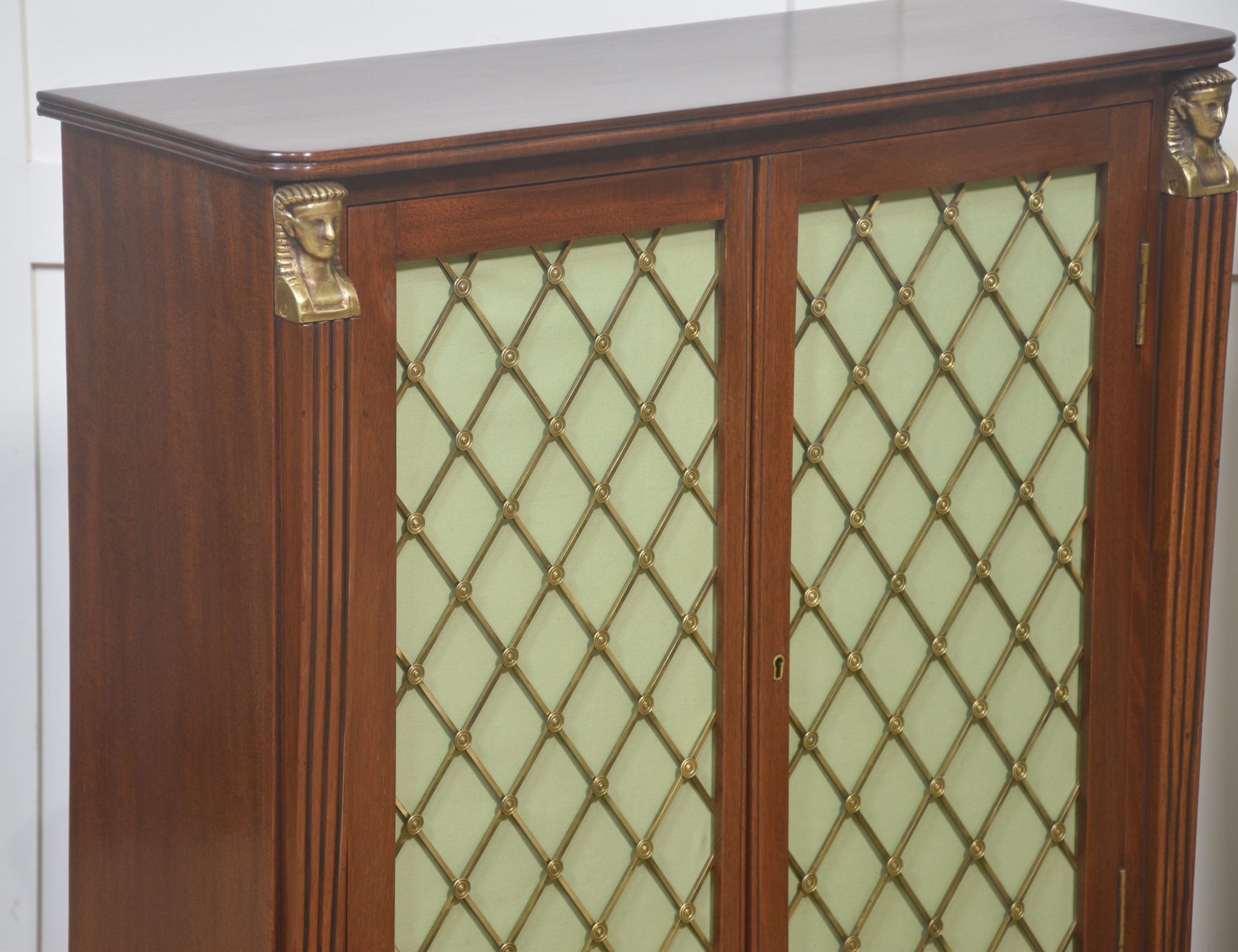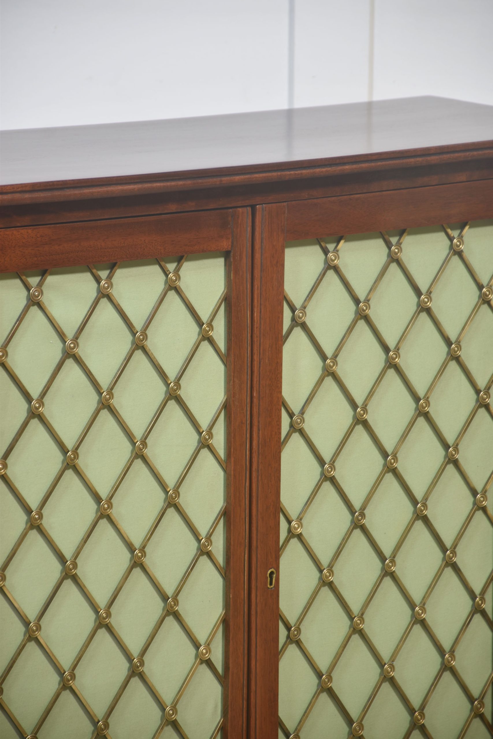 Pair of Regency-Style Mahogany Cabinets with Brass Lattice Doors