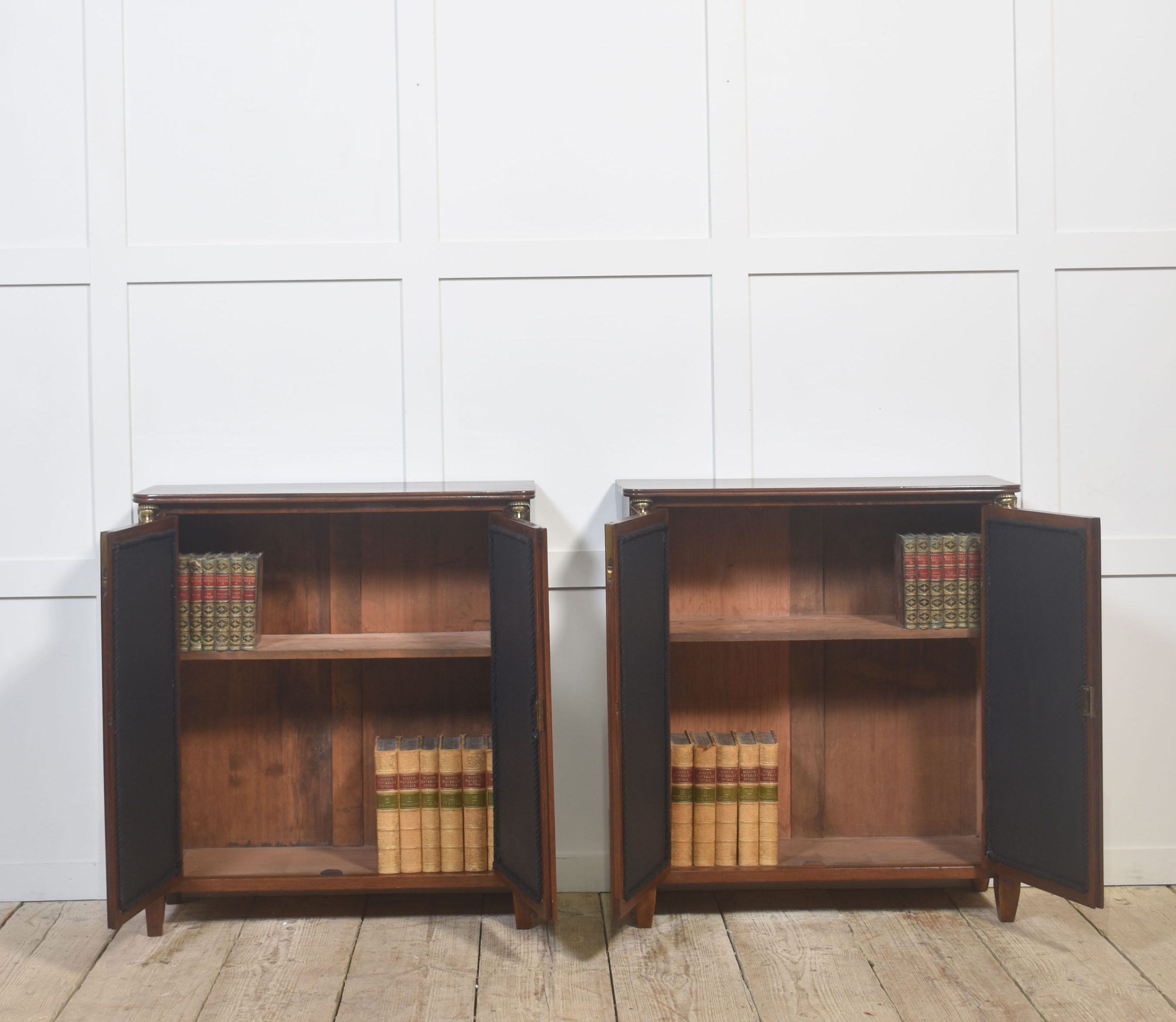 A refined and decorative pair of mahogany cabinets, executed in the Regency manner, distinguished by their elegant proportions and finely detailed fronts. Each cabinet is constructed from richly grained mahogany, finished in a warm, polished tone that highlights the natural depth of the wood.