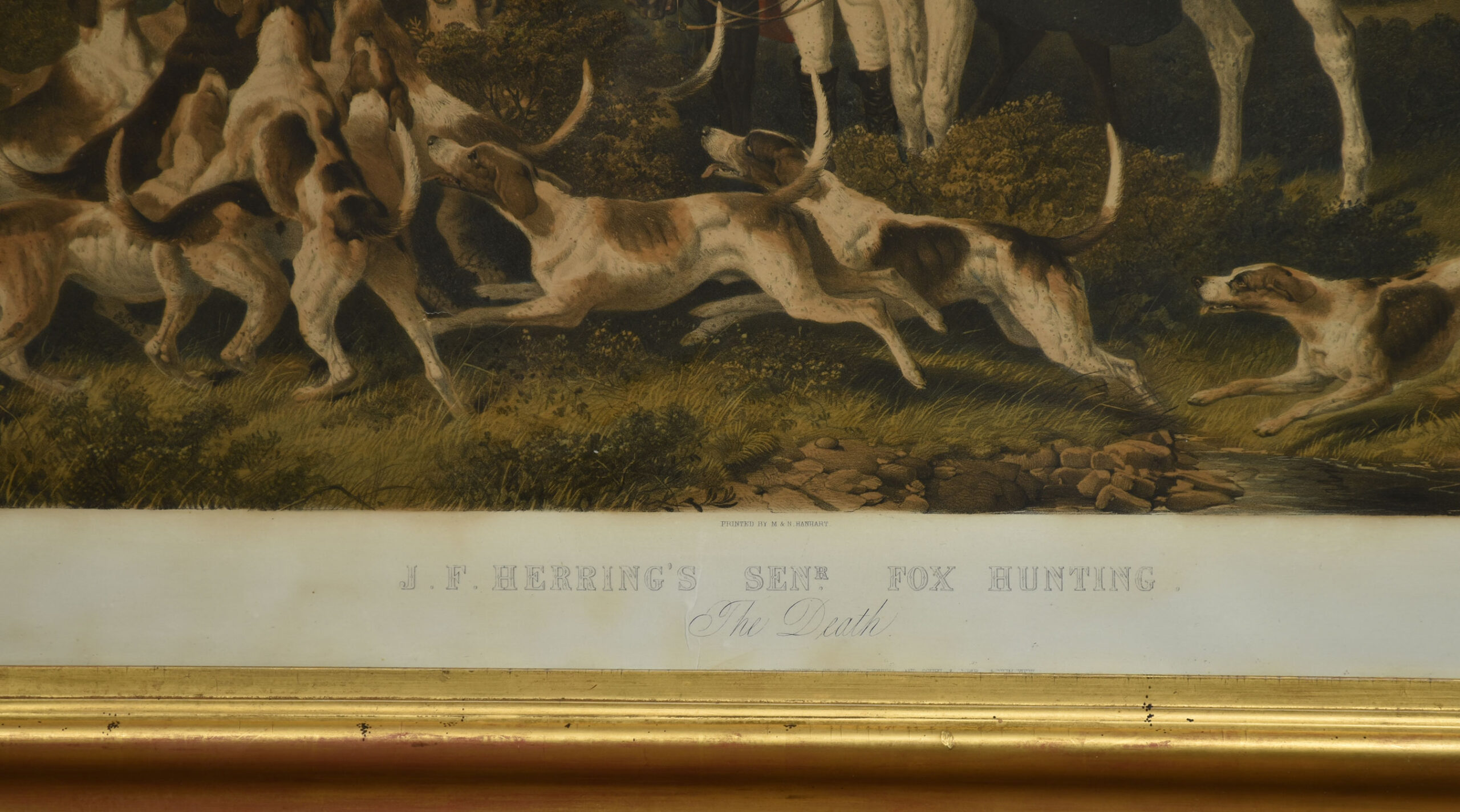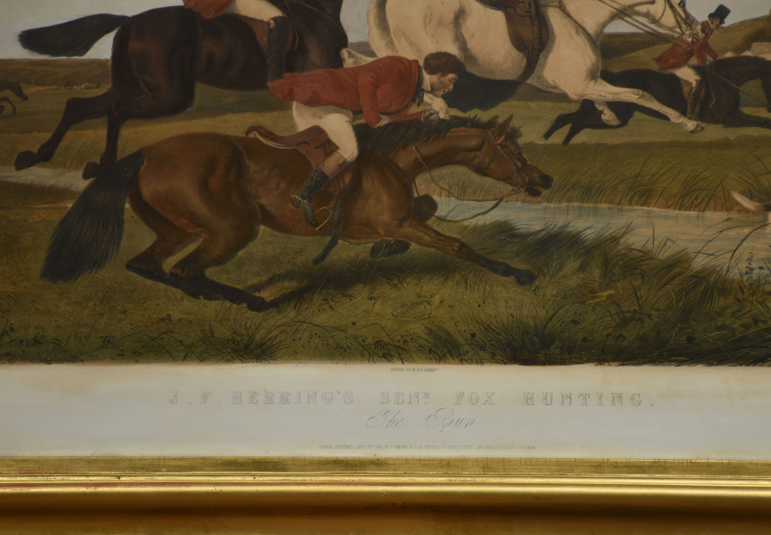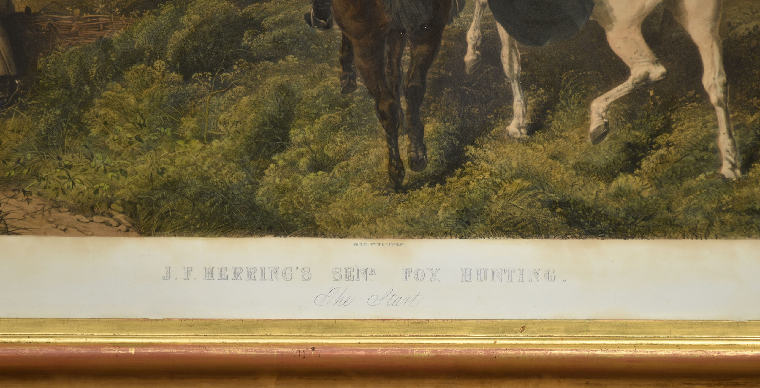 J. F. Herring, set of four 19th century Hunting colour engravings encased in giltwood frames.