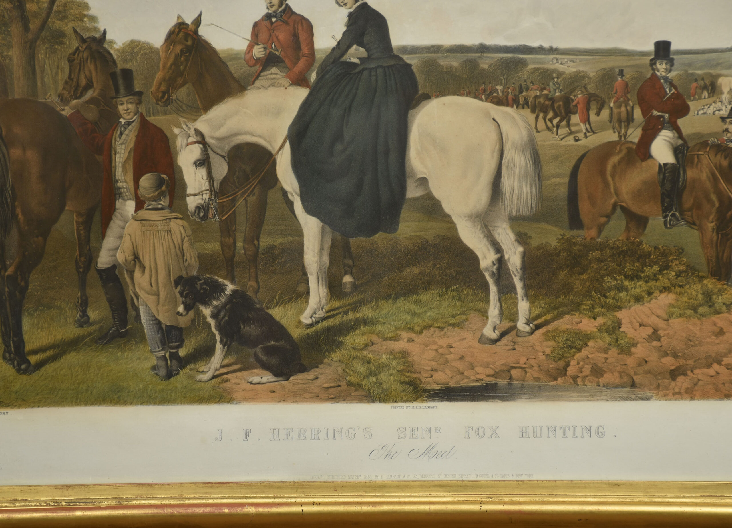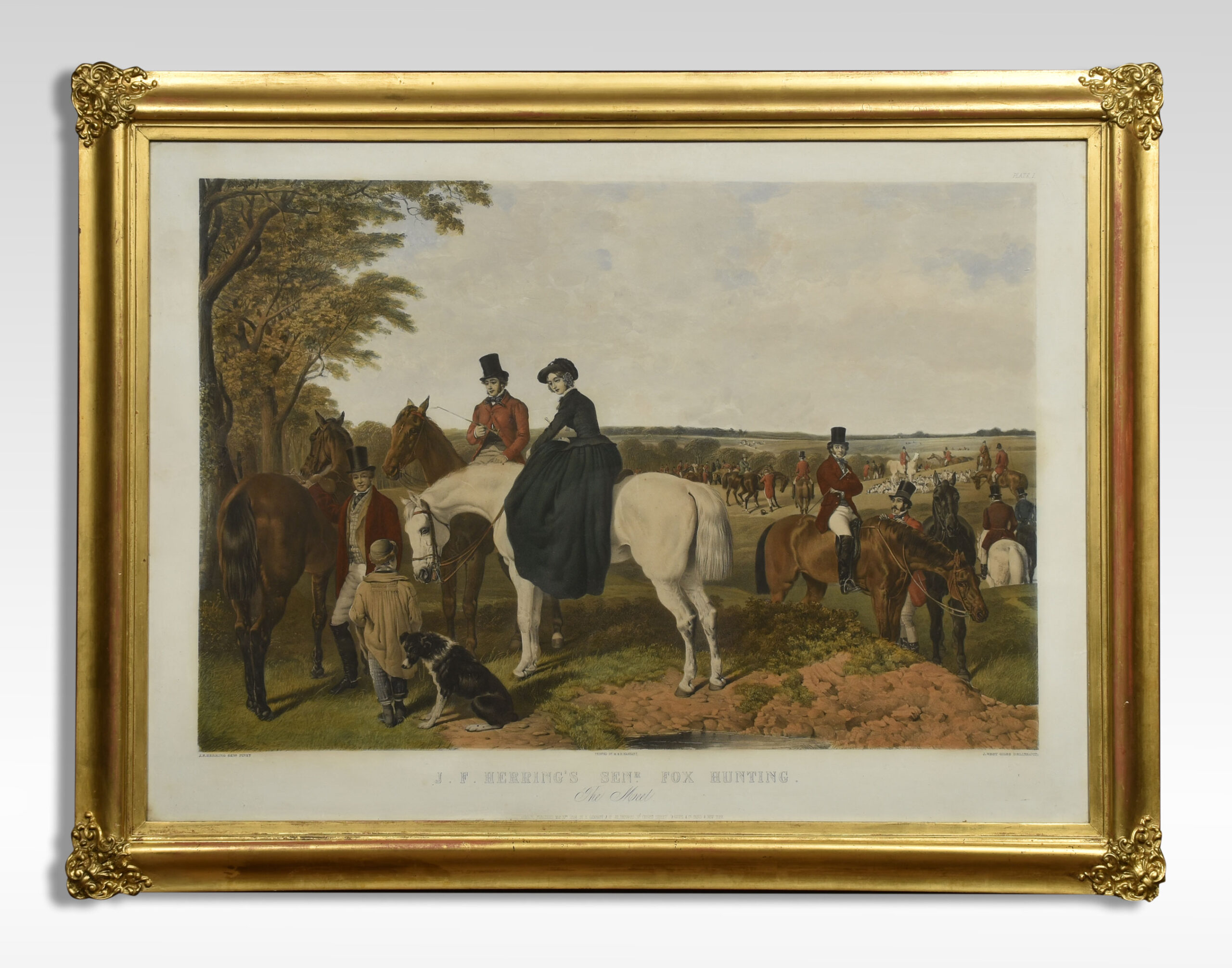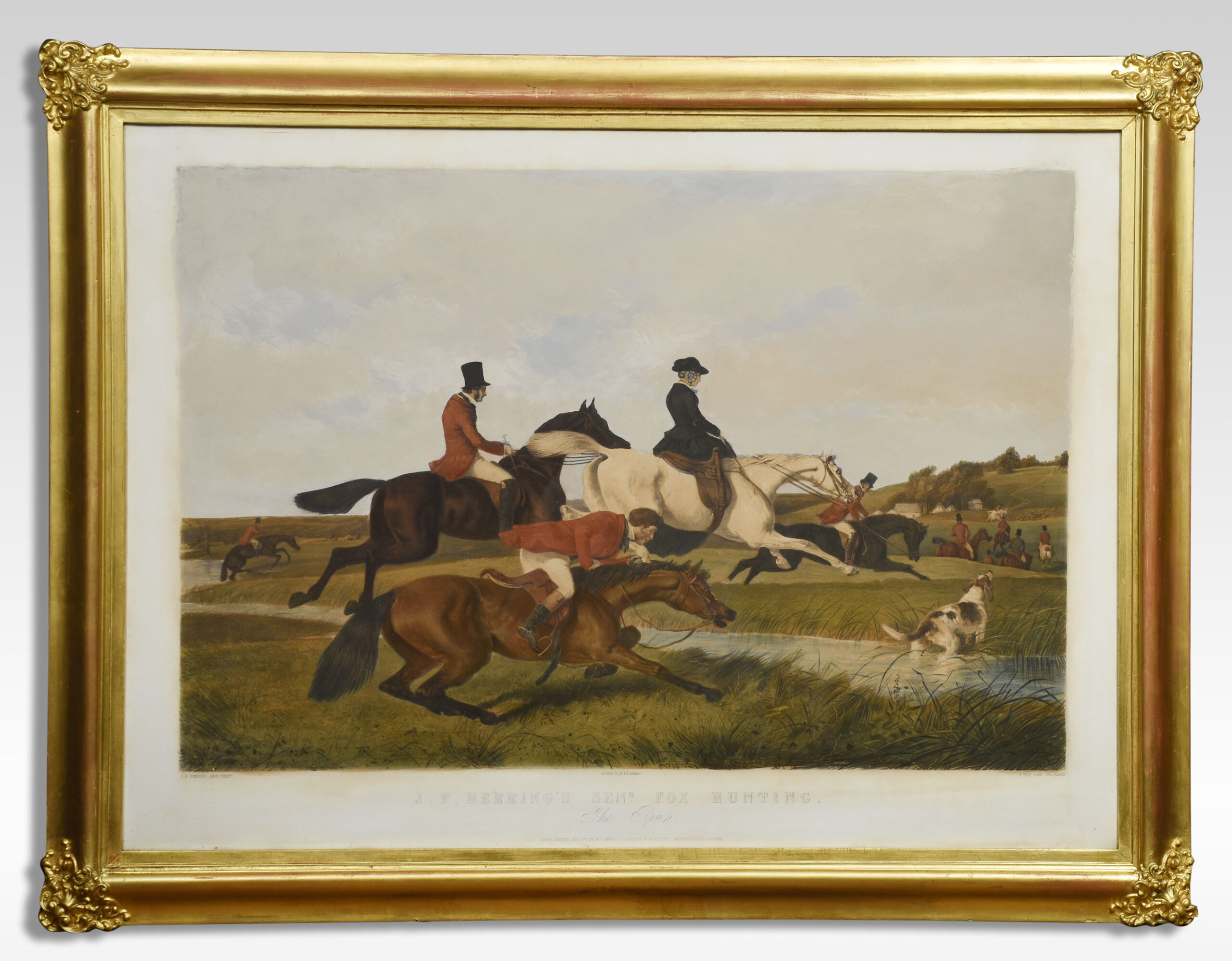 J. F. Herring, set of four 19th century Hunting colour engravings encased in giltwood frames.