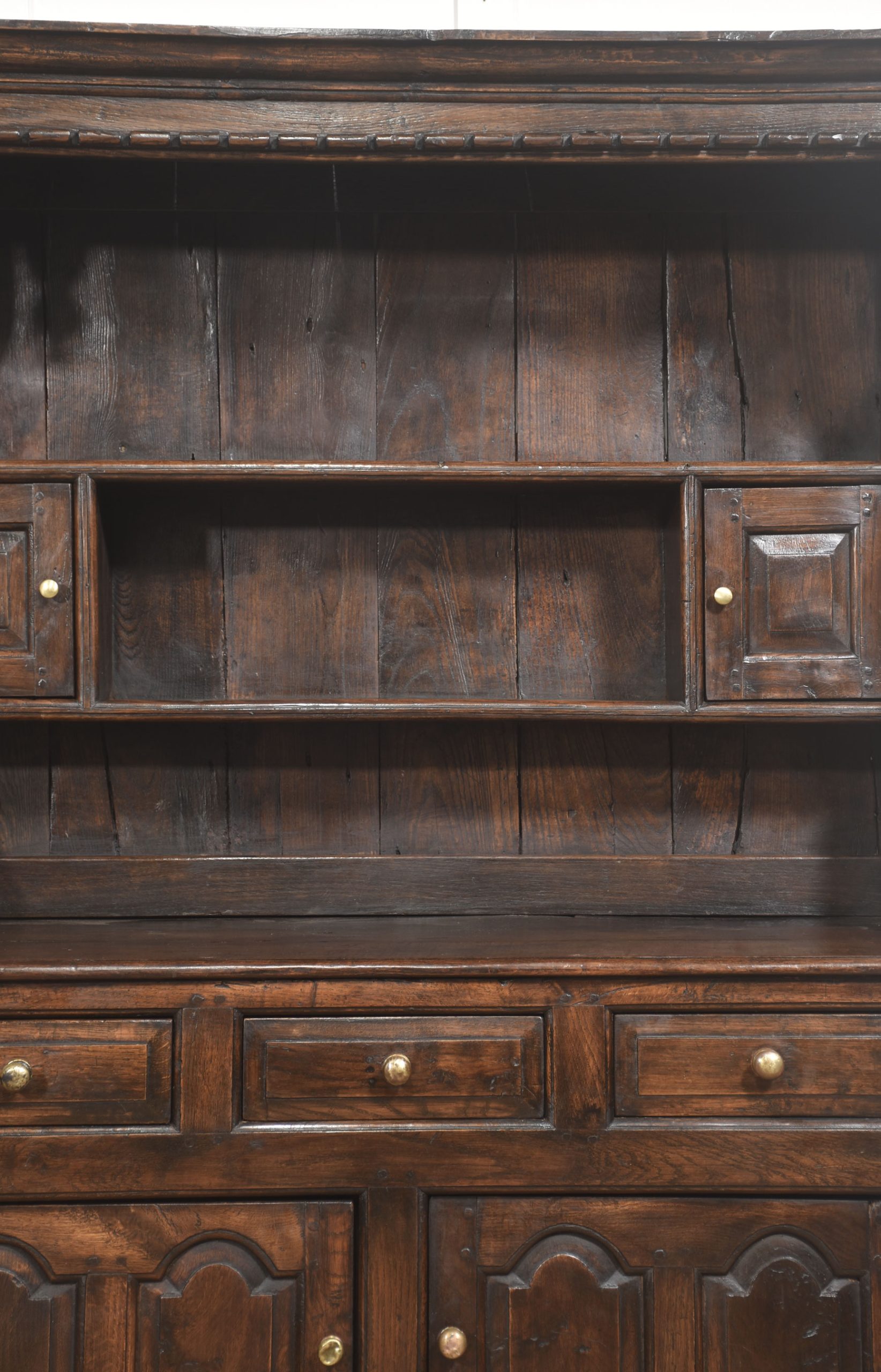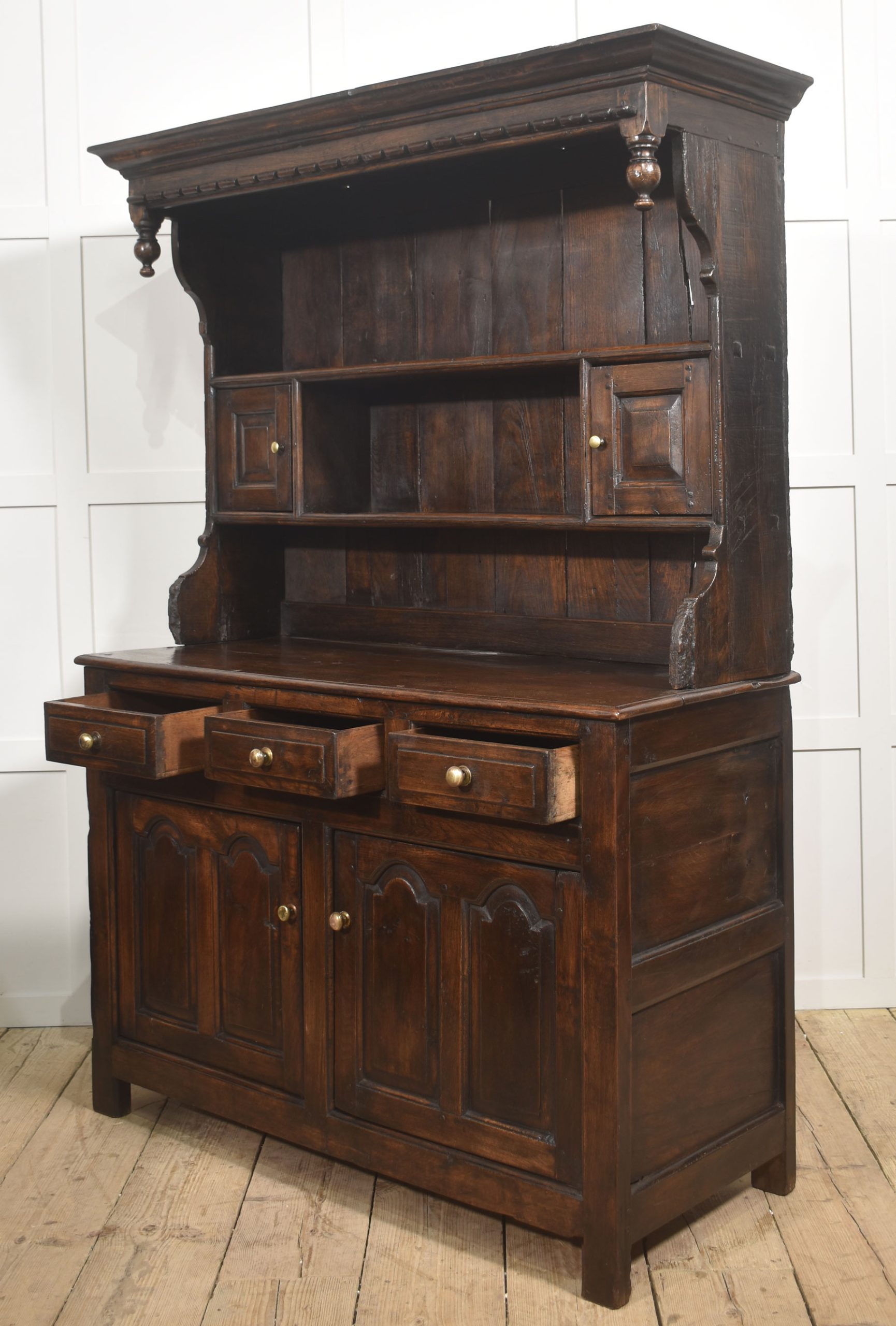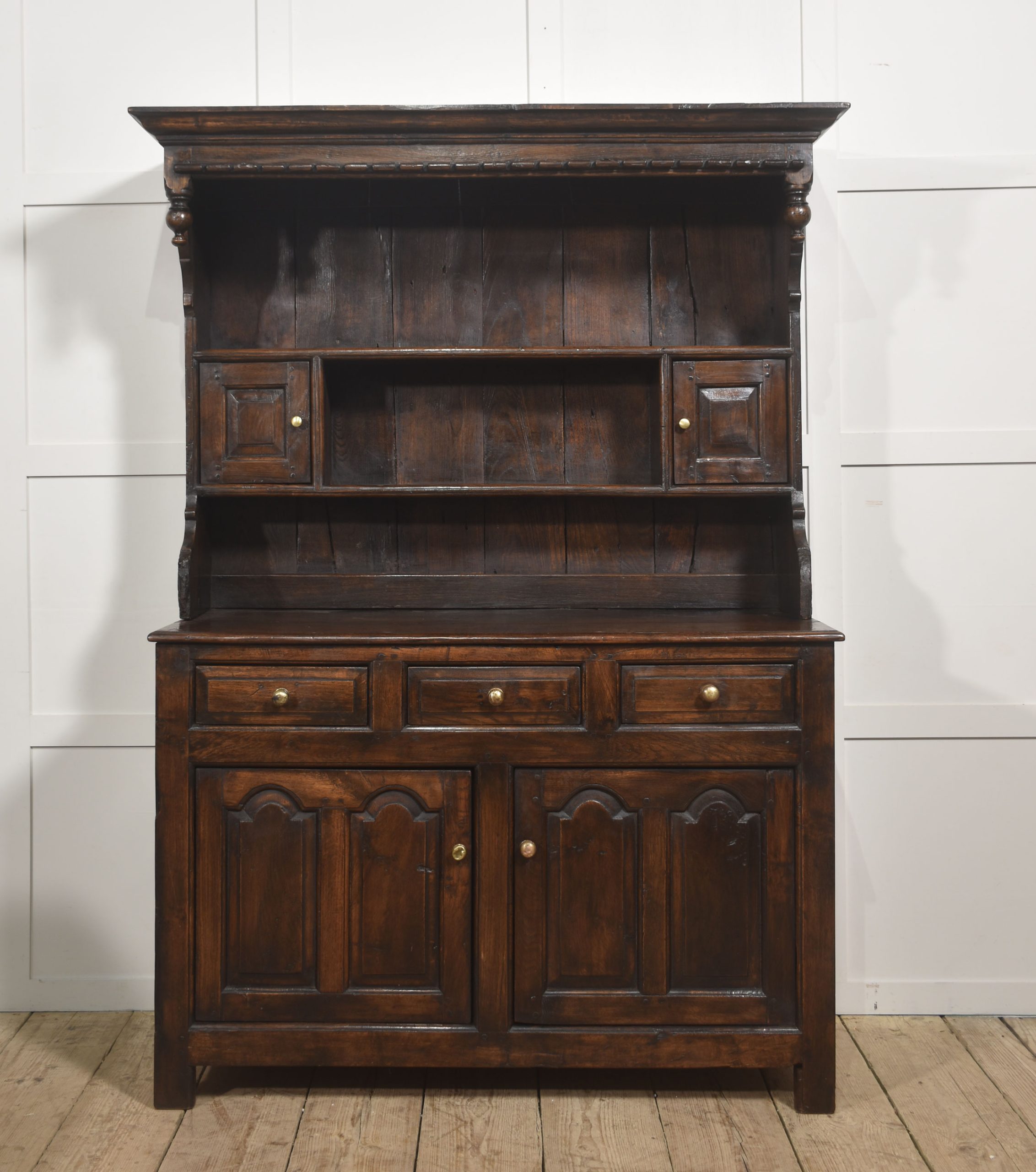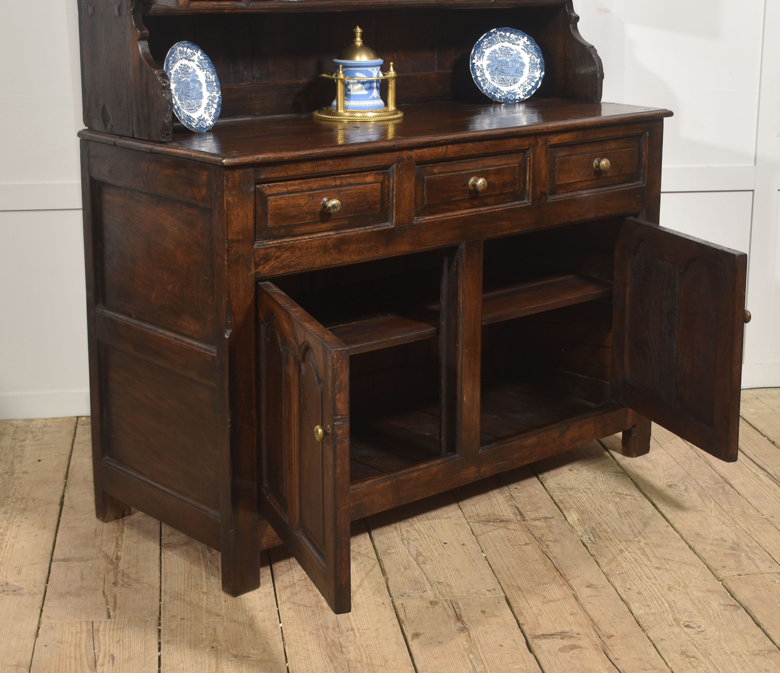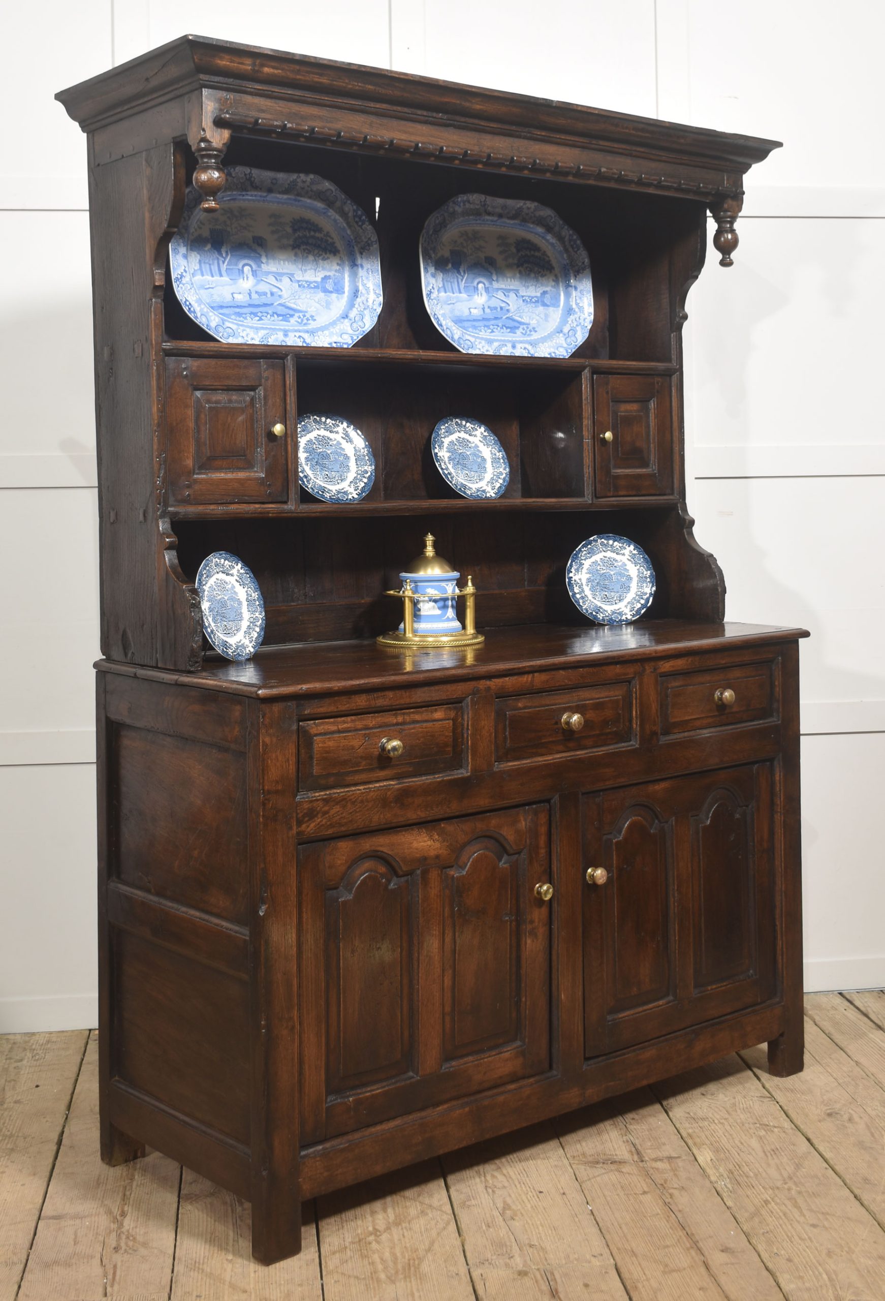 A characterful example of traditional Welsh vernacular furniture, combining practical storage with ample space for the display of ceramics and domestic wares.